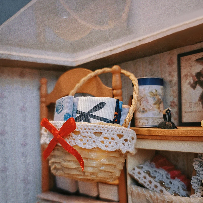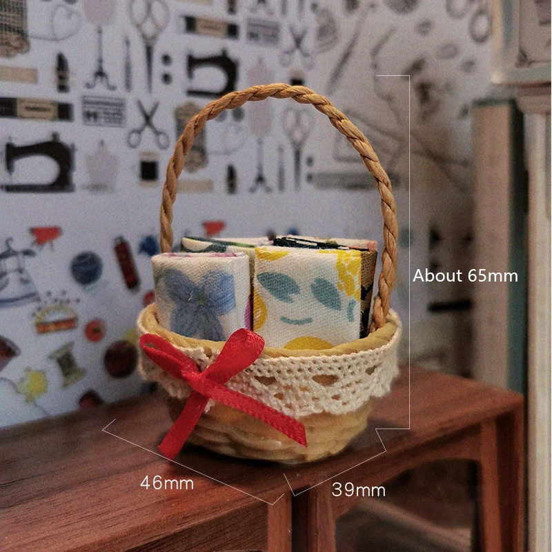 1/12 Dollhouse Simulation Mini Woven Fabric Basket Dollhouse Sewing Scene Decoration Accessories Dolls House Photo Props