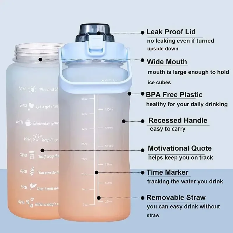 • 1/2 Gallon Water Bottle - It's easier than ever to drink the best amount of water all day with drink reminder and tracker to boost your daily water intake