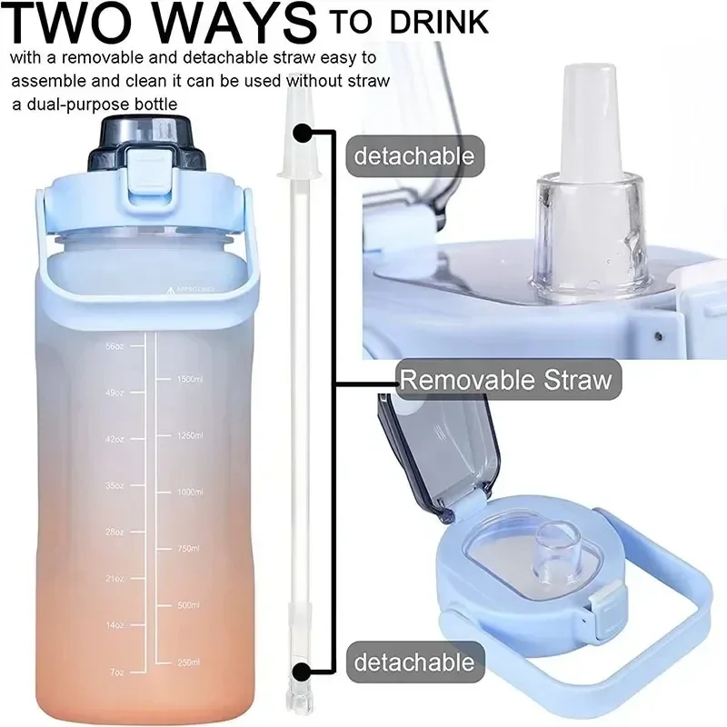 1-3PCS Sports Water Bottle for Running Drinking Bottle 2L Motivational with Time Marker Stickers Portable Reusable Plastic Cups