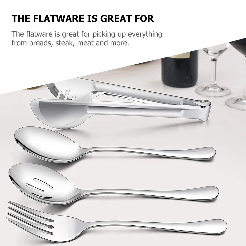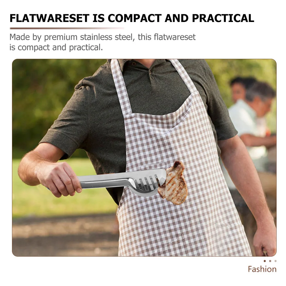 1 set 1 Set Stainless Steel Flatware Set Compact Food Tong Spoon Fork For Outdoor Bbq Restaurant Home Hotel Buffet Party Kitchen