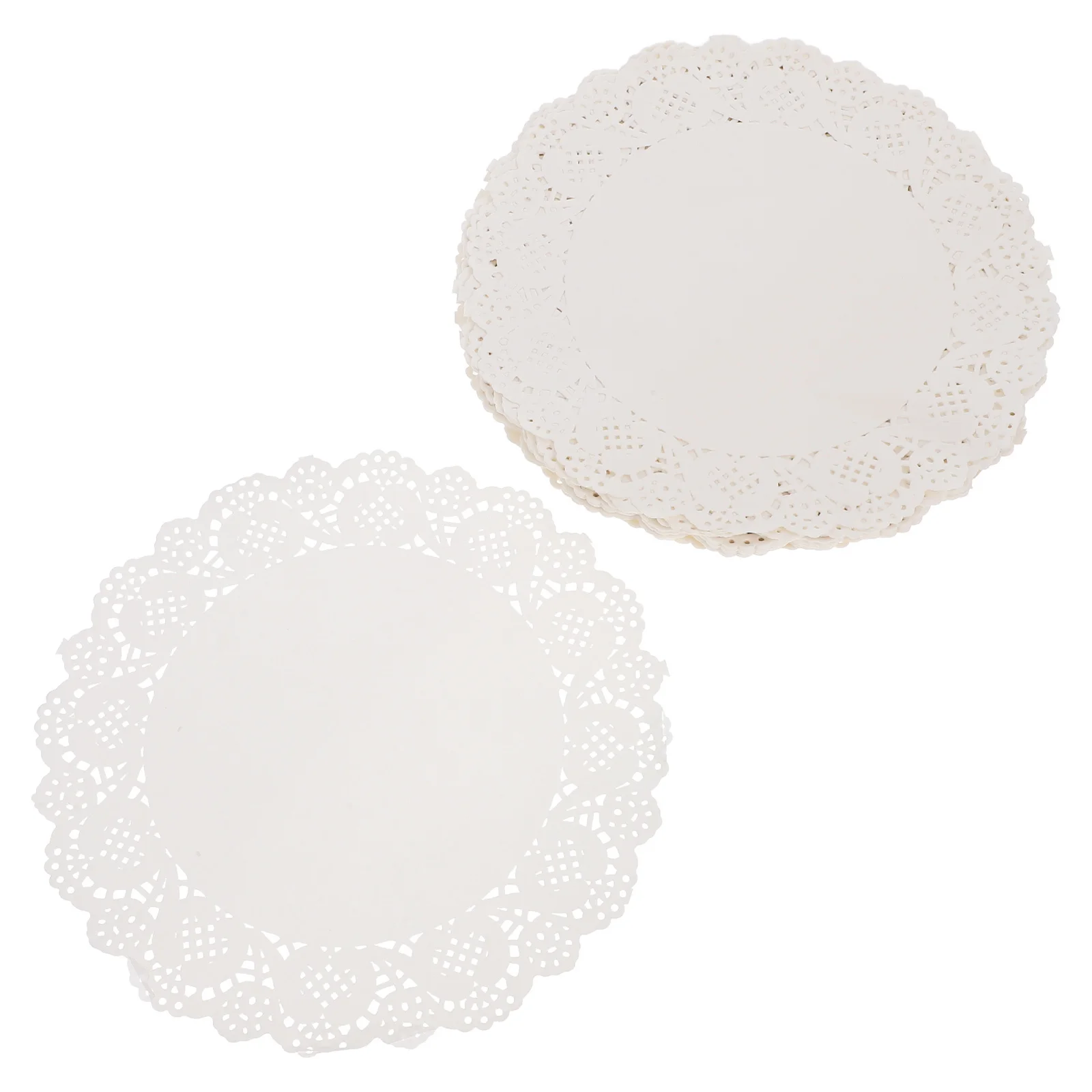 - Good for home, coffee and bar use.1 of 100pcs Disposable Oil-absorbing White Lace Paper Doilies Cake Box Liner Packaging Paper Pad 7.5"