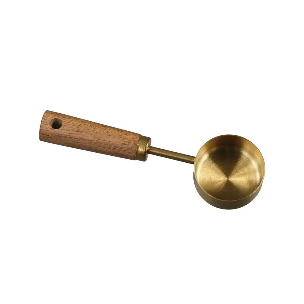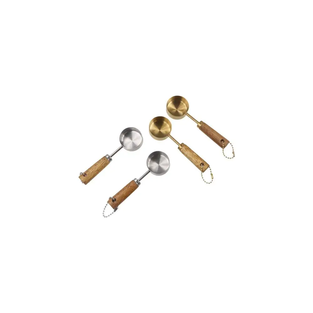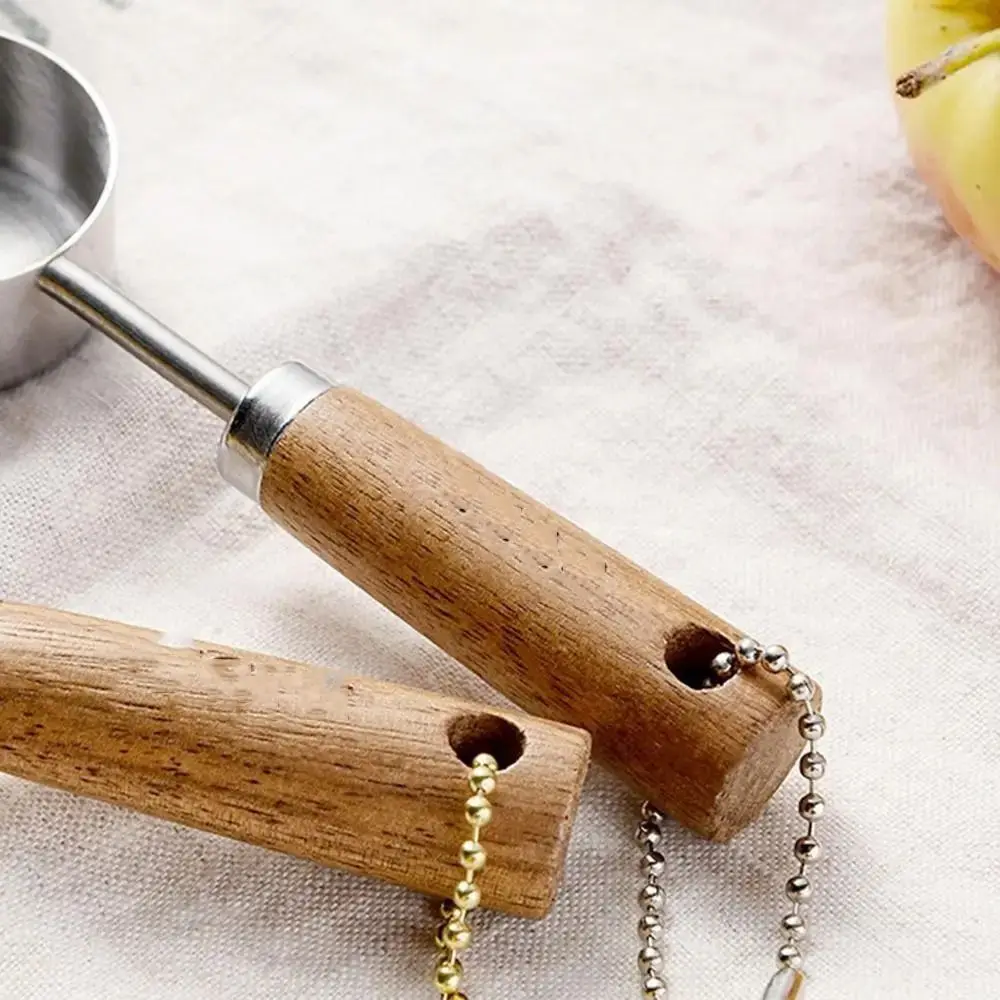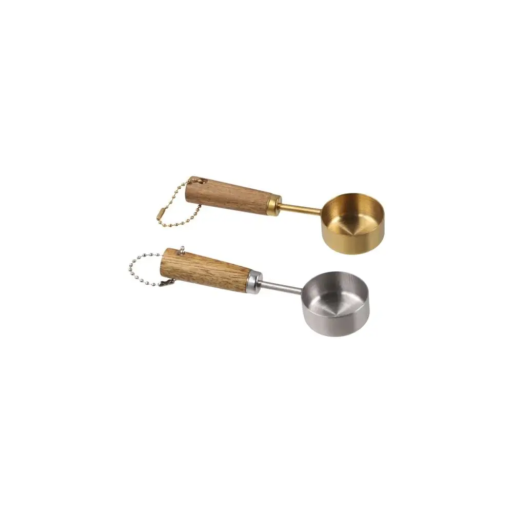 14ml Stainless Steel Measure Spoon with Wood Handle Hangable Measuring Cup Flat Bottom Rustproof Kitchen Measure Tools
