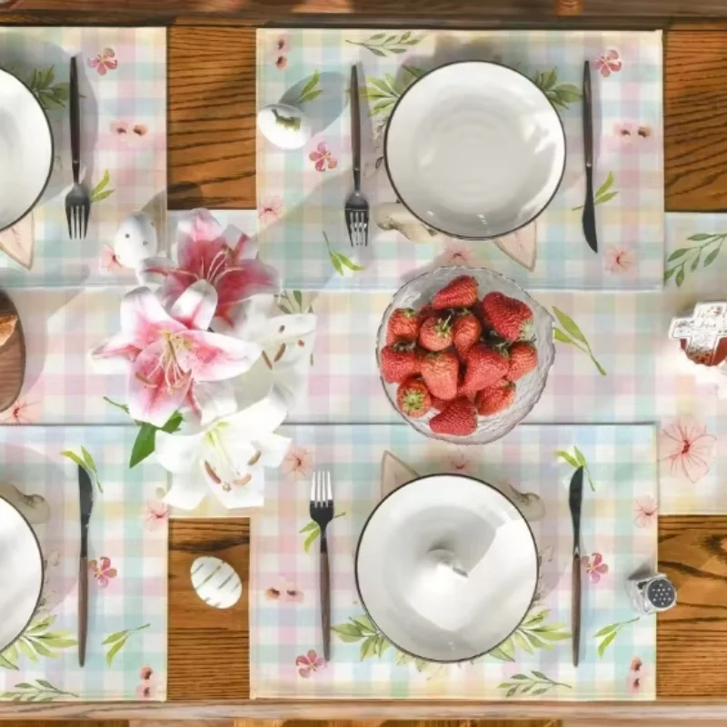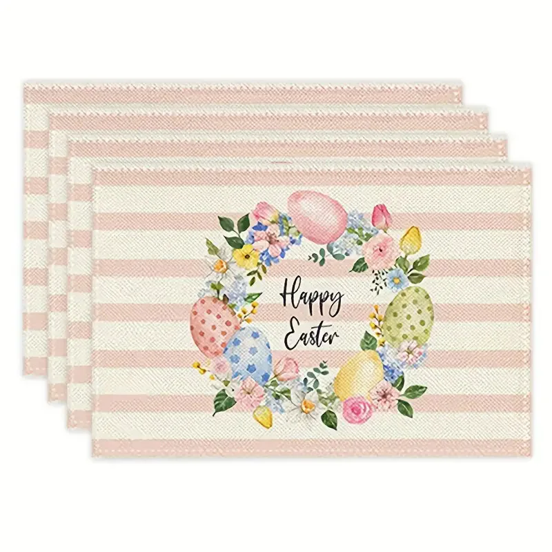 Easter Placemats Linen Rabbit Bunny Egg Dining Table Cloth Placemat Spring Holiday Happy Easter Decoration for Home Kitchen