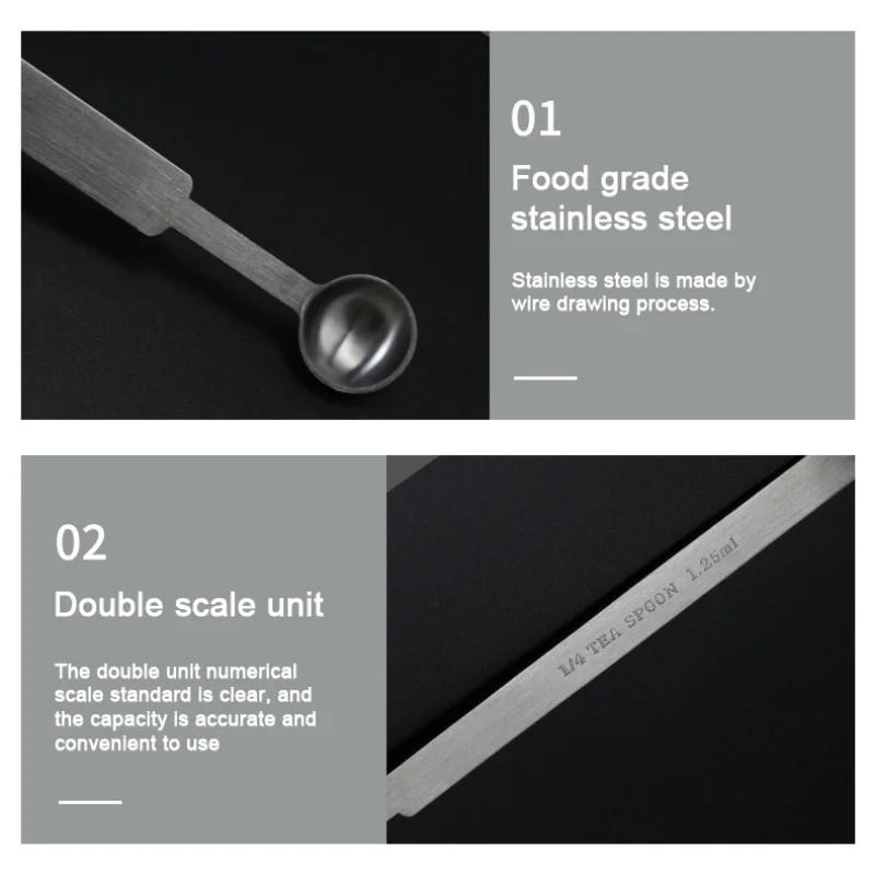 Stainless steel coffee bean spoon measuring spoon weighing milk powder spoon dosing spoon gram spoon coffee powder spoon five-piece set measuring spoon