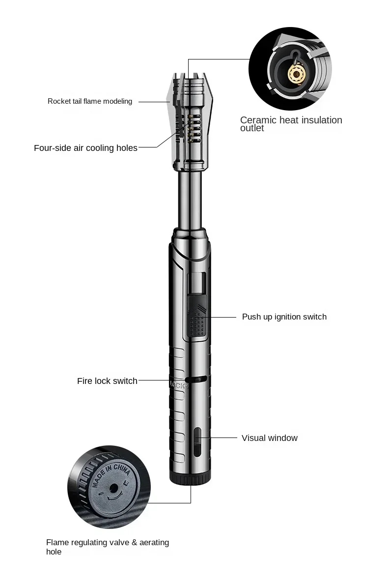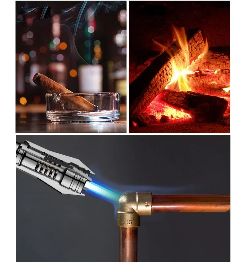 2024 New Unusual  Butane Gas Lighter 360° Use Metal Outdoor Windproof Turbine Torch Jet Lighter Gun BBQ Welding Cigar Tool
