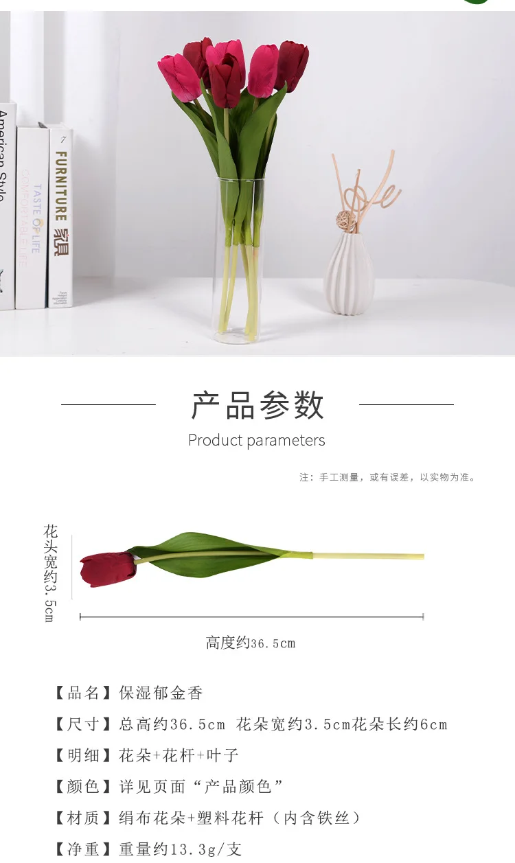 2pc 363cm High-end Hand Moisturizing Tulip Flower Flower Arrangement Bonsai Material Home Wedding Photography Props Artificial F