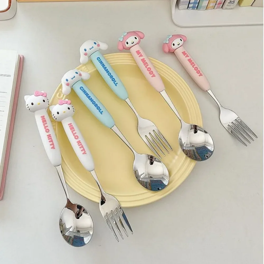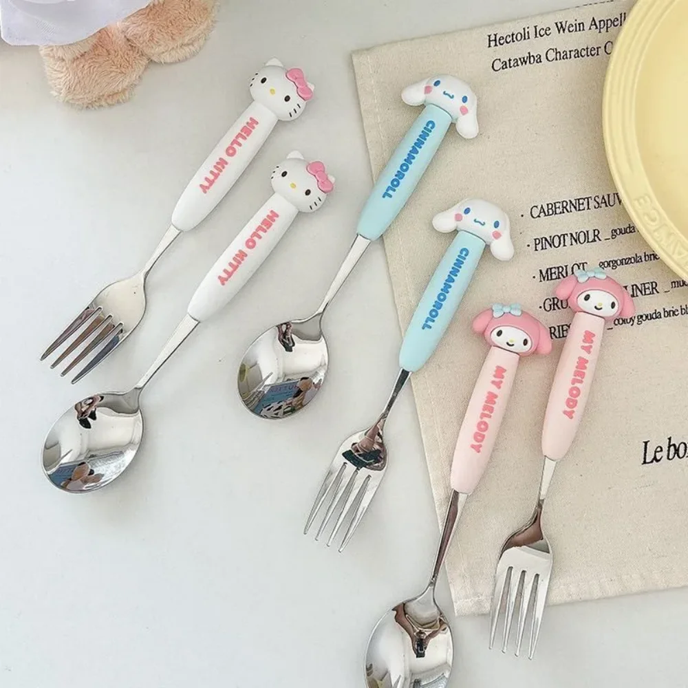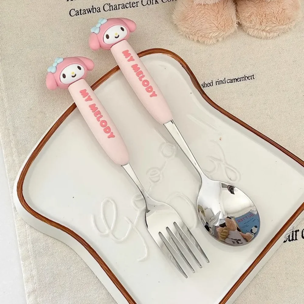 2Pcs/Set Sanrio Tableware Cute Cartoon Melody Cinnamoroll Students Stainless Steel Spoon Forks Two-piece Set Kitchen Supplies