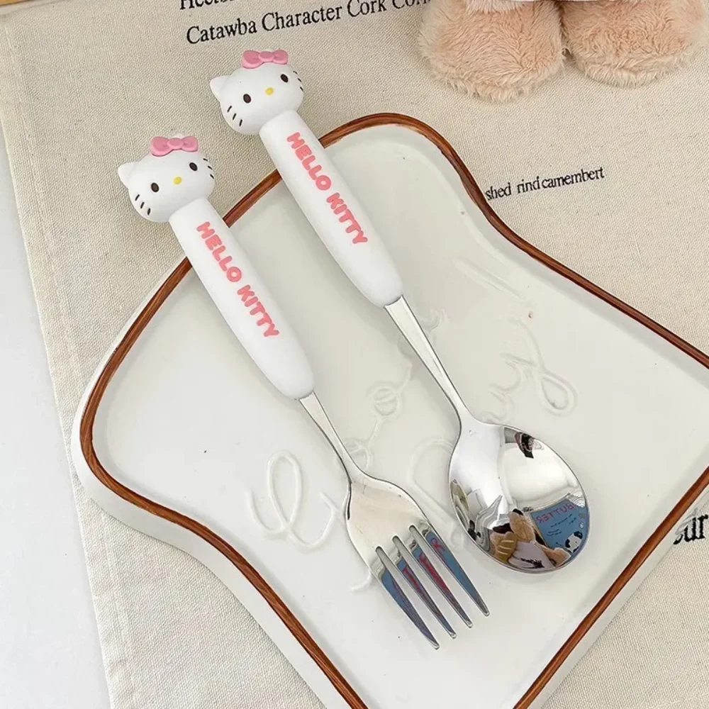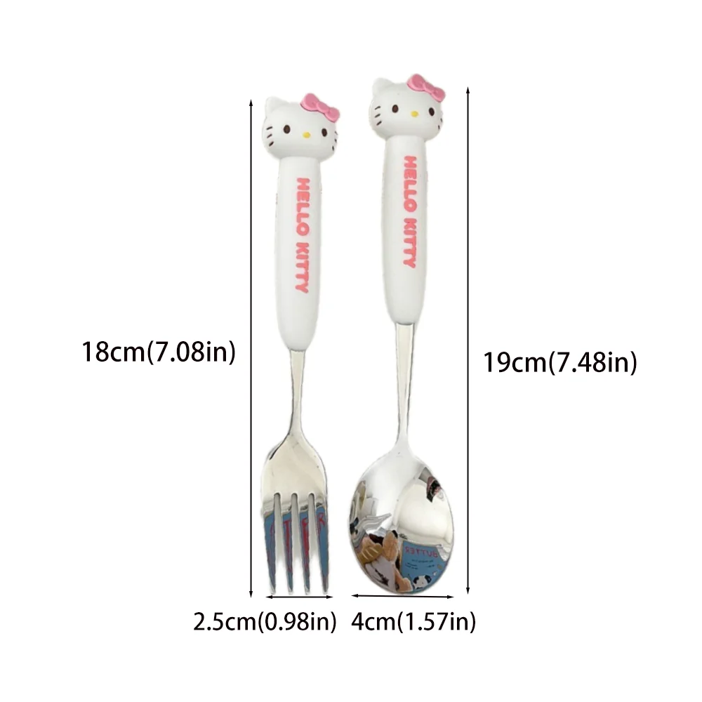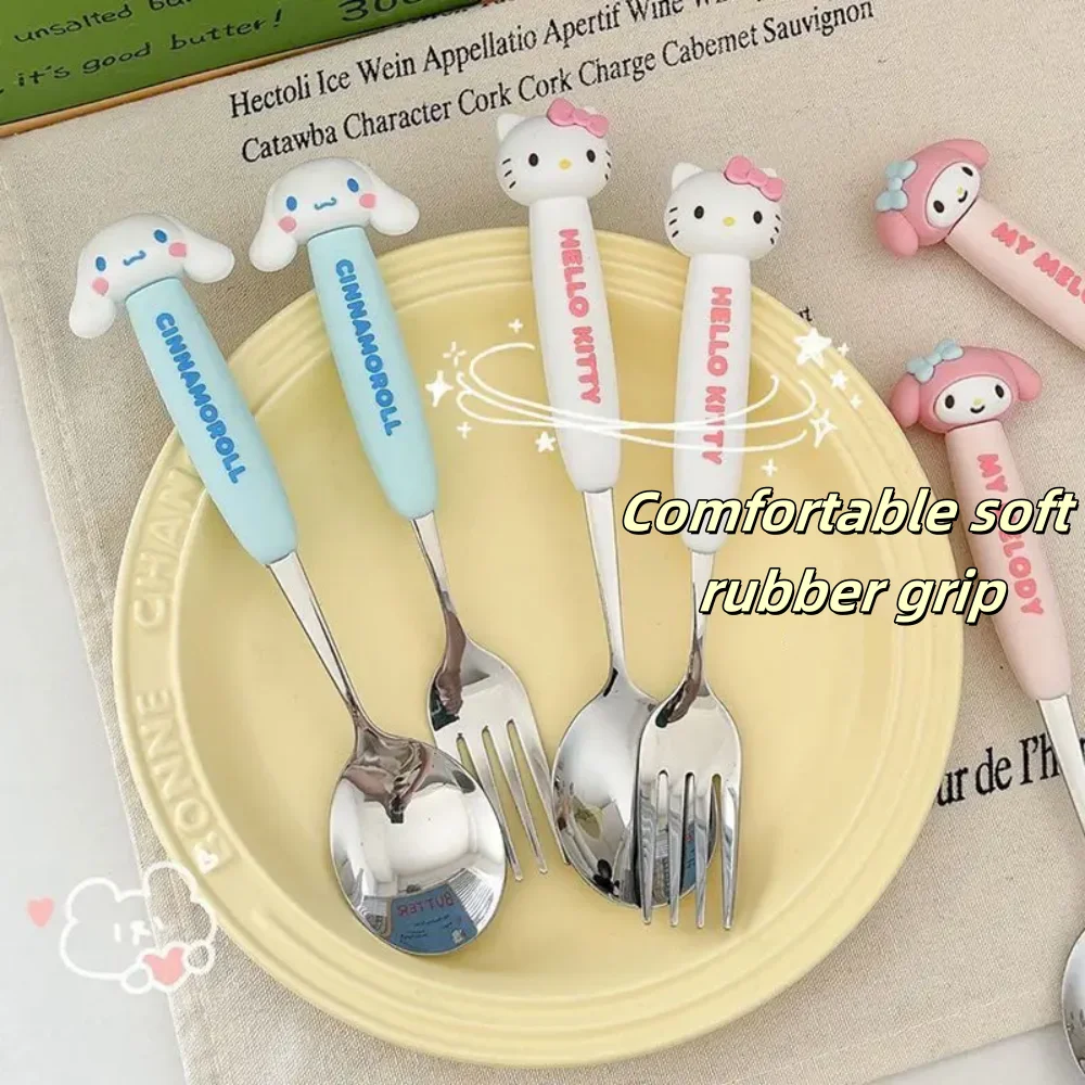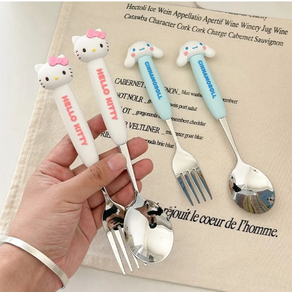 2Pcs/Set Sanrio Tableware Cute Cartoon Melody Cinnamoroll Students Stainless Steel Spoon Forks Two-piece Set Kitchen Supplies