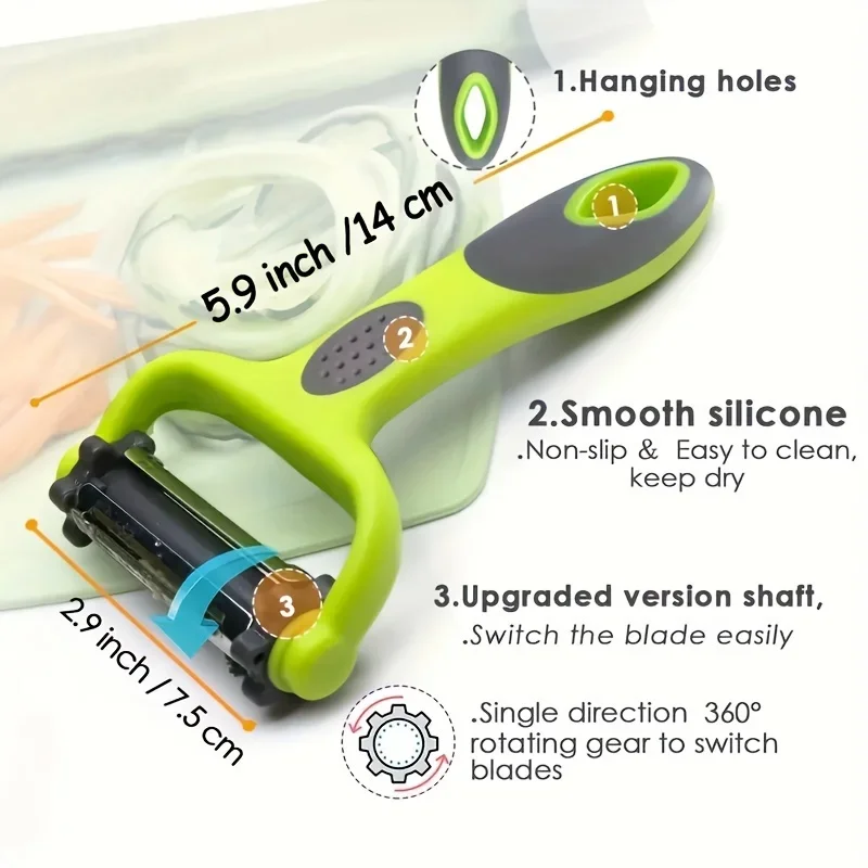 3 In 1 Swivel Serrated Vegetable Peeler,the blade can rotate 360 degrees.