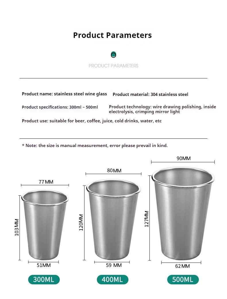 30ml-500ml Stainless Steel Metal Cup Beer Cups White Wine Glass Coffee Tumbler Travel Camping Mugs Drinking Tea Mug Set Outdoor