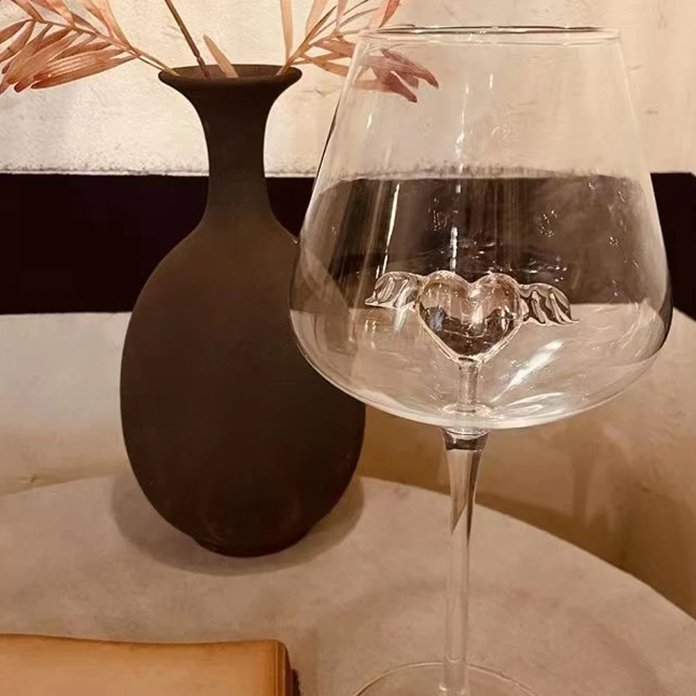Transparent design: The body of this three-dimensional pink heart glass goblet is transparent, allowing you to observe the wall of the red wine glass more clearly.