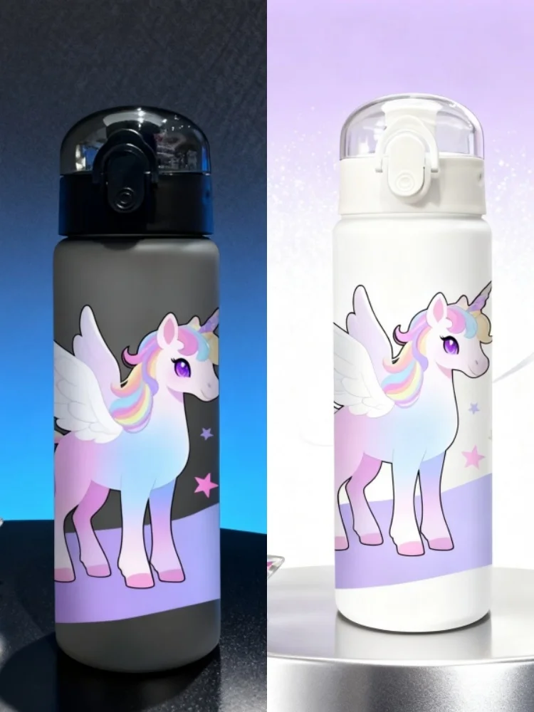 Cute Cartoon Design: Crafted with precision 3D printing technology, the colors are bright and fade-resistant,the bottle features an exquisitely detailed cartoon animal motif that pops with charm.Enter a realm of magic with our Unicorn Pattern Plastic Cup! Show casing vivid and charming unicorn illustrations, this cup transforms every sip into a fantastical experience. Constructed from safe, BPA - free,food - grade plastic, it's incredibly lightweight and resistant to breaking,making it a reliable choice for any setting. The spill - proof design safeguards against messy accidents, while its sleek surface simplifies cleanup.Whether for kids’ parties, picnics, or as a delightful addition to your daily routine, this cup is a dreamy blend of practicality and whimsical charm, perfect for unicorn lovers of all ages.