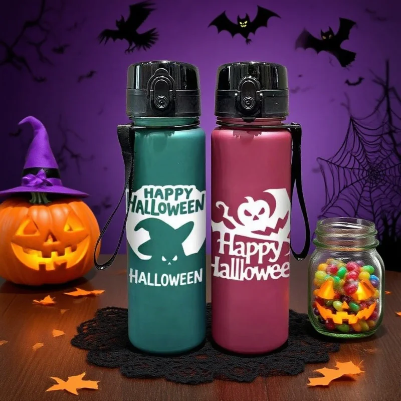 3D Printed Matte Finish Halloween-themed water bottle 650ML with a large capacity, PVC-Free, Leak-Proof,Perfect for Holidays