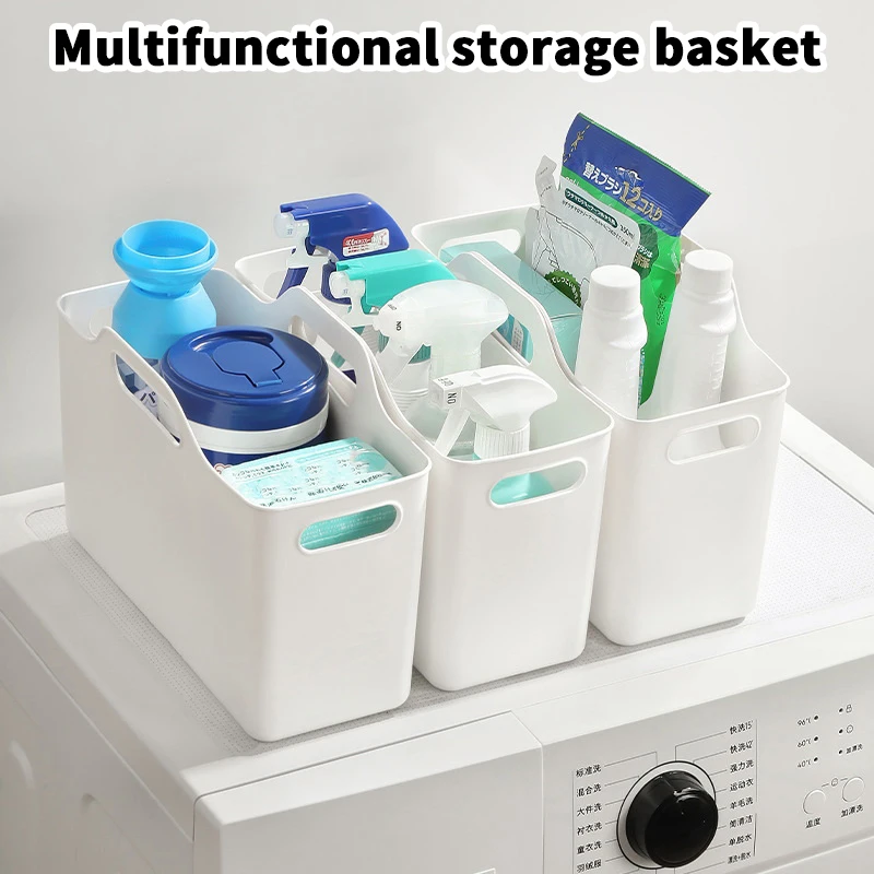 3. Stacking design: The plastic sundry storage basket has a handle, which makes it easy to take things and easy to find.