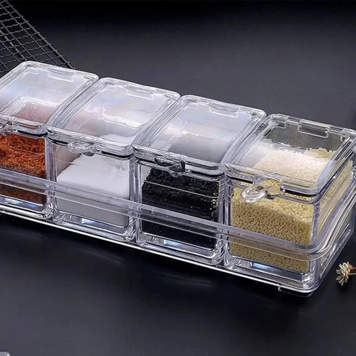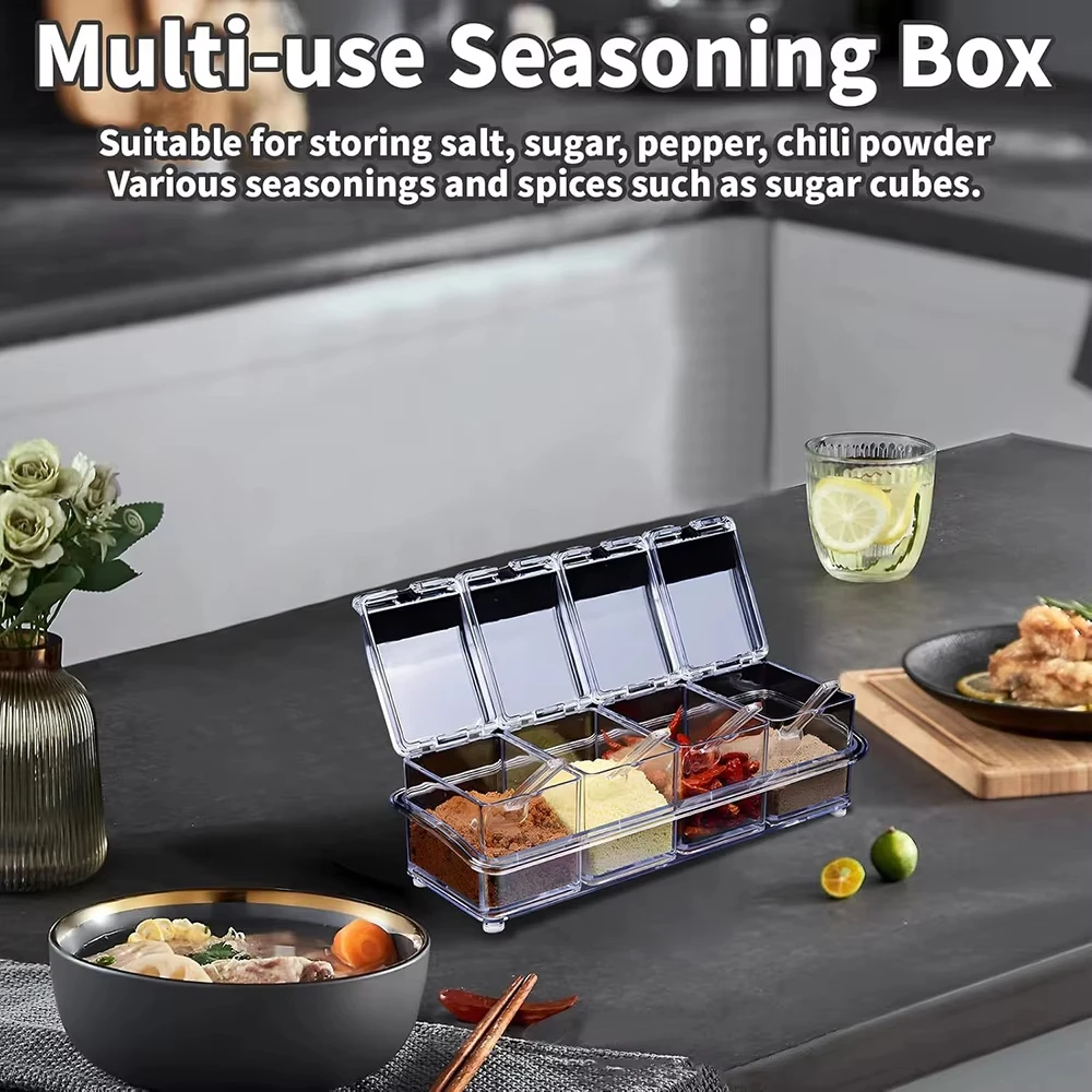Four independent compartments can store different seasonings (such as salt, sugar, chili powder) at the same time to avoid cross flavors.