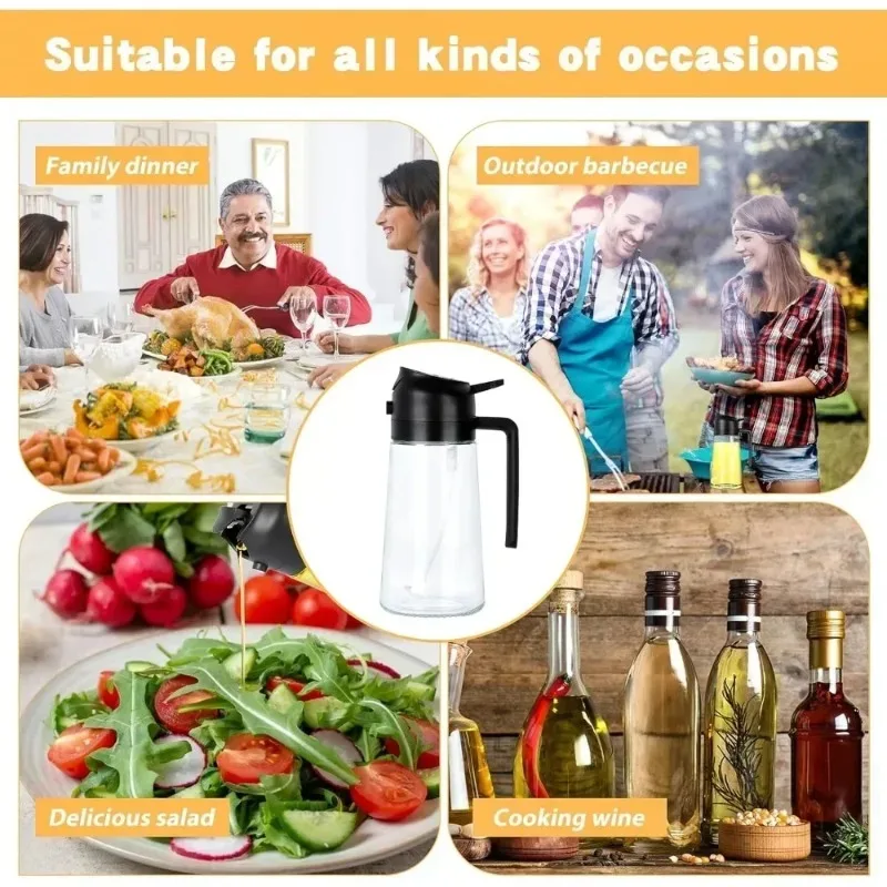 470ml 2 in1 Glass Oil Sprayer and Dispenser with Fine Mist Nozzle for Cooking Baking BBQ Air Fryer Kitchen Tool