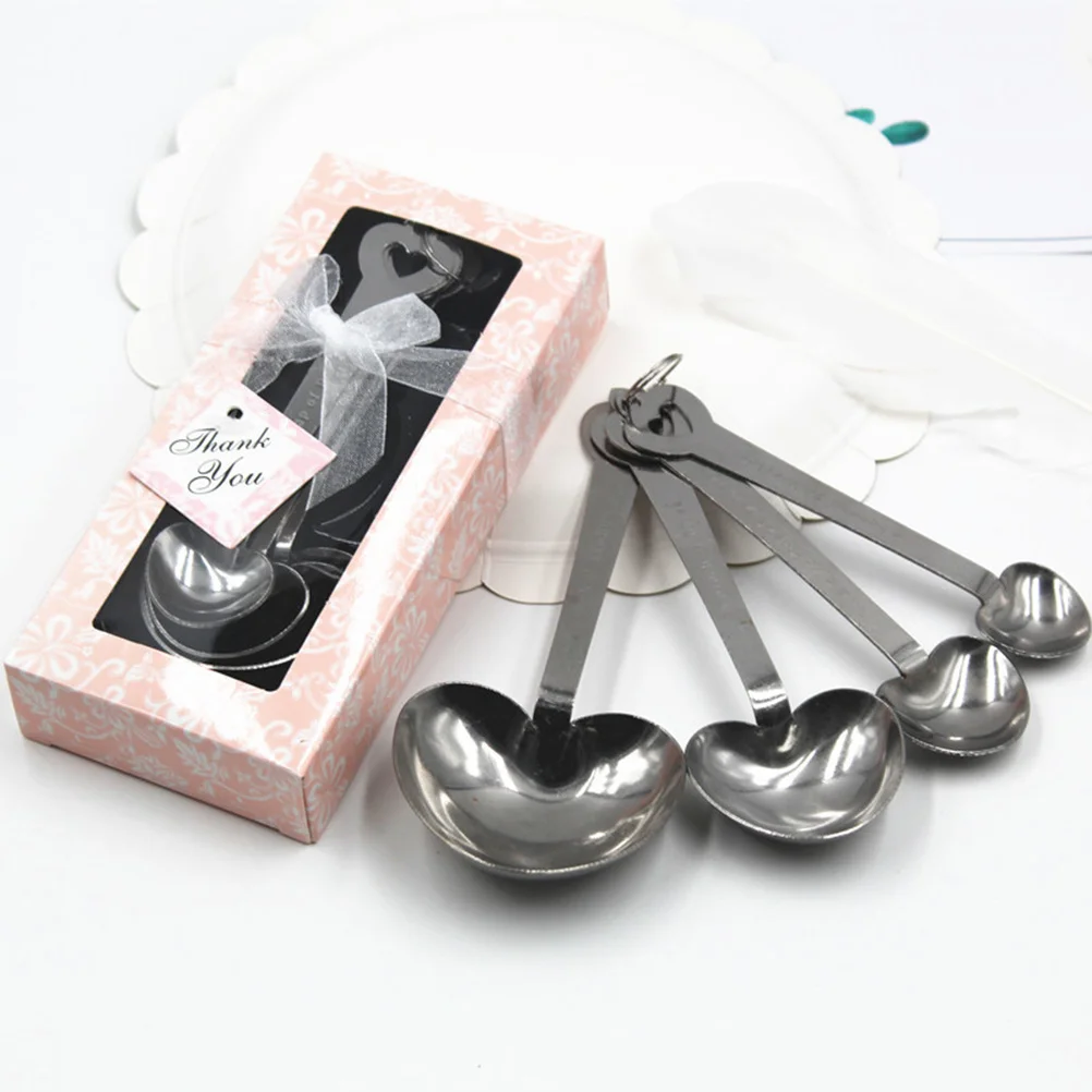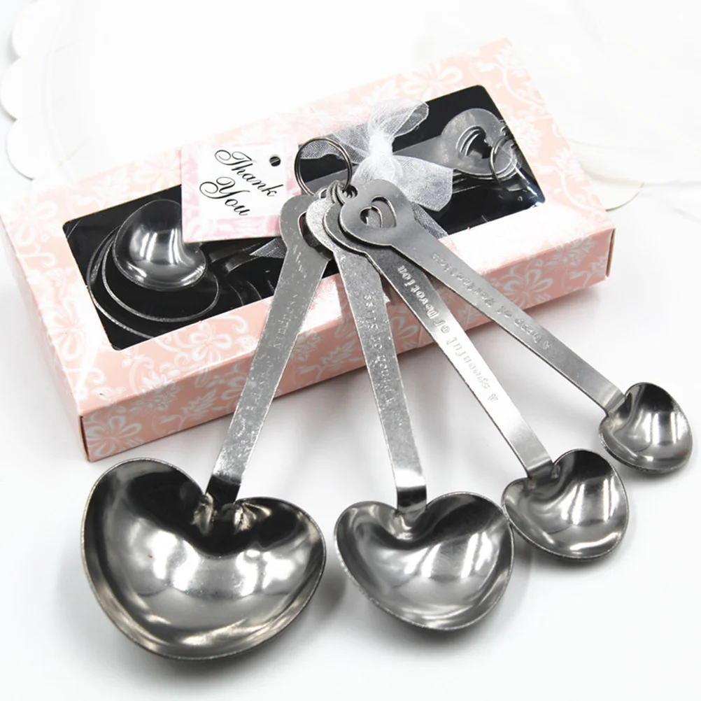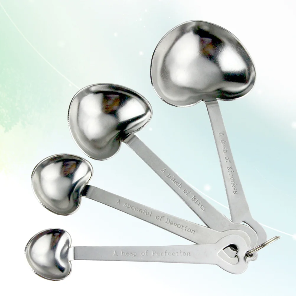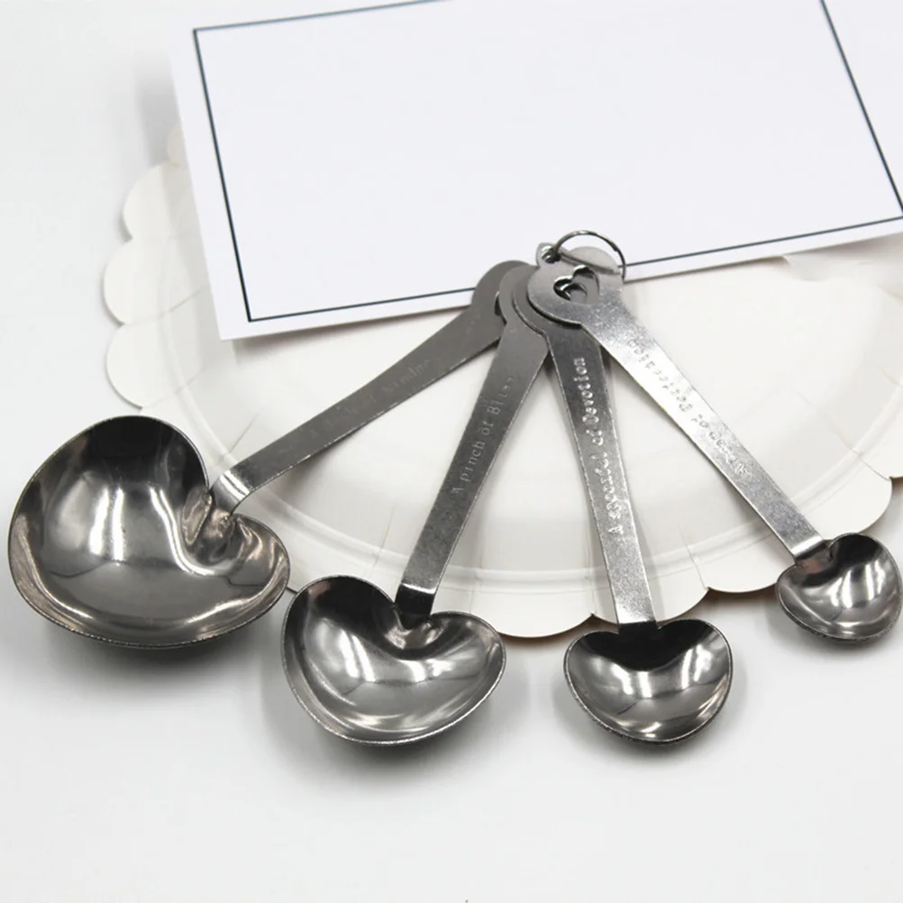 4Pcs Stainless Steel Heart Shape Measuring Spoons Set Stackable Nested Kitchen for Liquid Baking