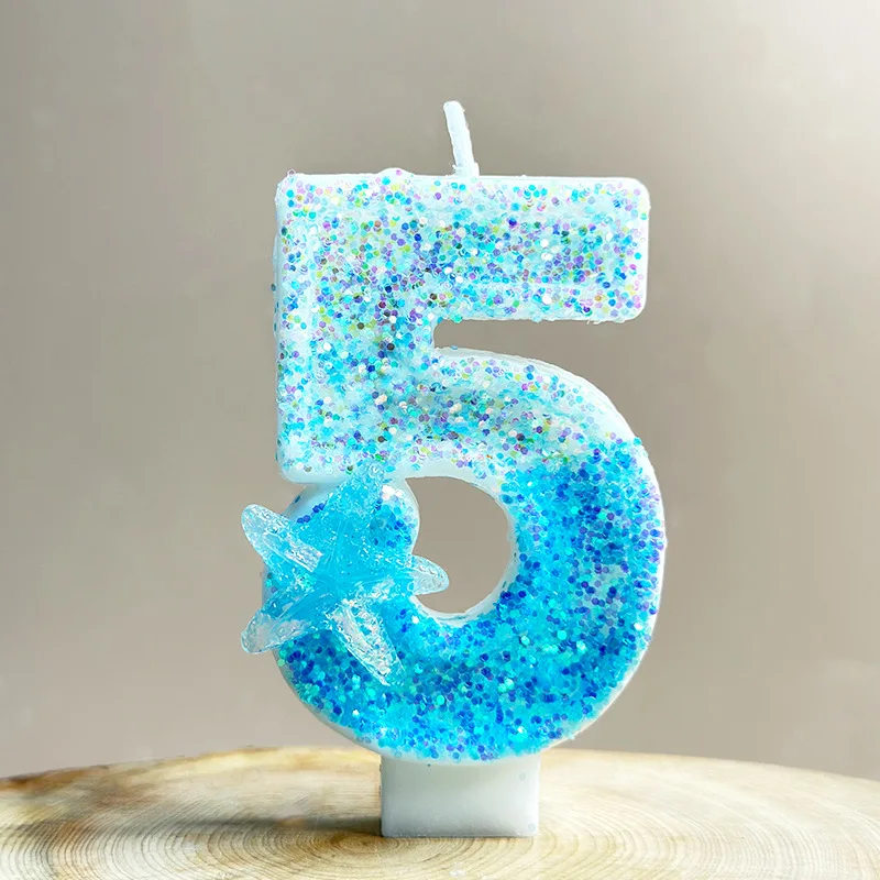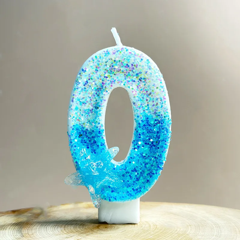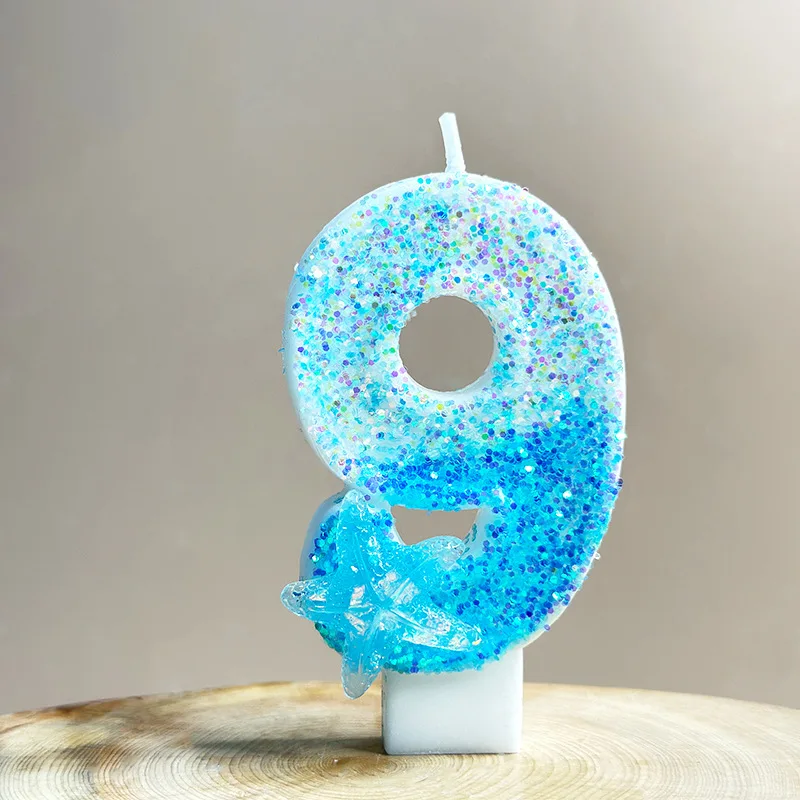 4x7.5cm Gradient Blue Starfish Digital Candle Cake 0-9 Birthday Candle Party Party Birthday Atmosphere Decoration