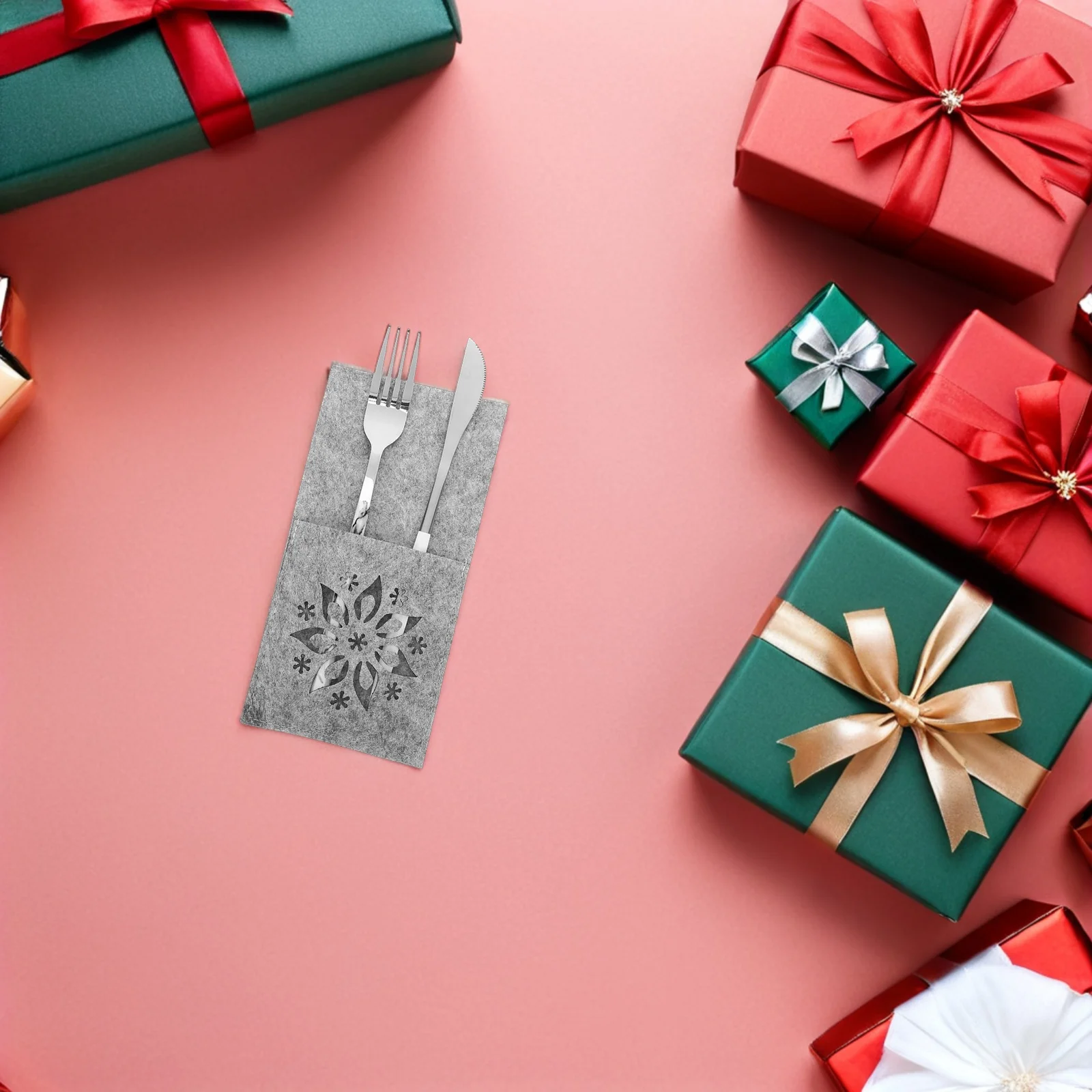 -Festive dining presentation: instantly boost the holiday spirit with these christmas cutlery sleeves bags featuring snowflake cutouts, designed to enhance your christmas supplies and party decor portable cutlery bag