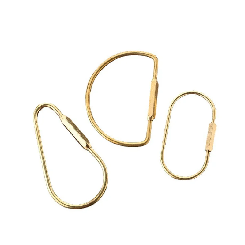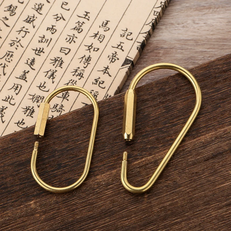 Brass Keychain With Lock D Key Chain Gold Color Camping Carabiner Survival Camping Equipment Buckles Hooks Key Ring Accessories