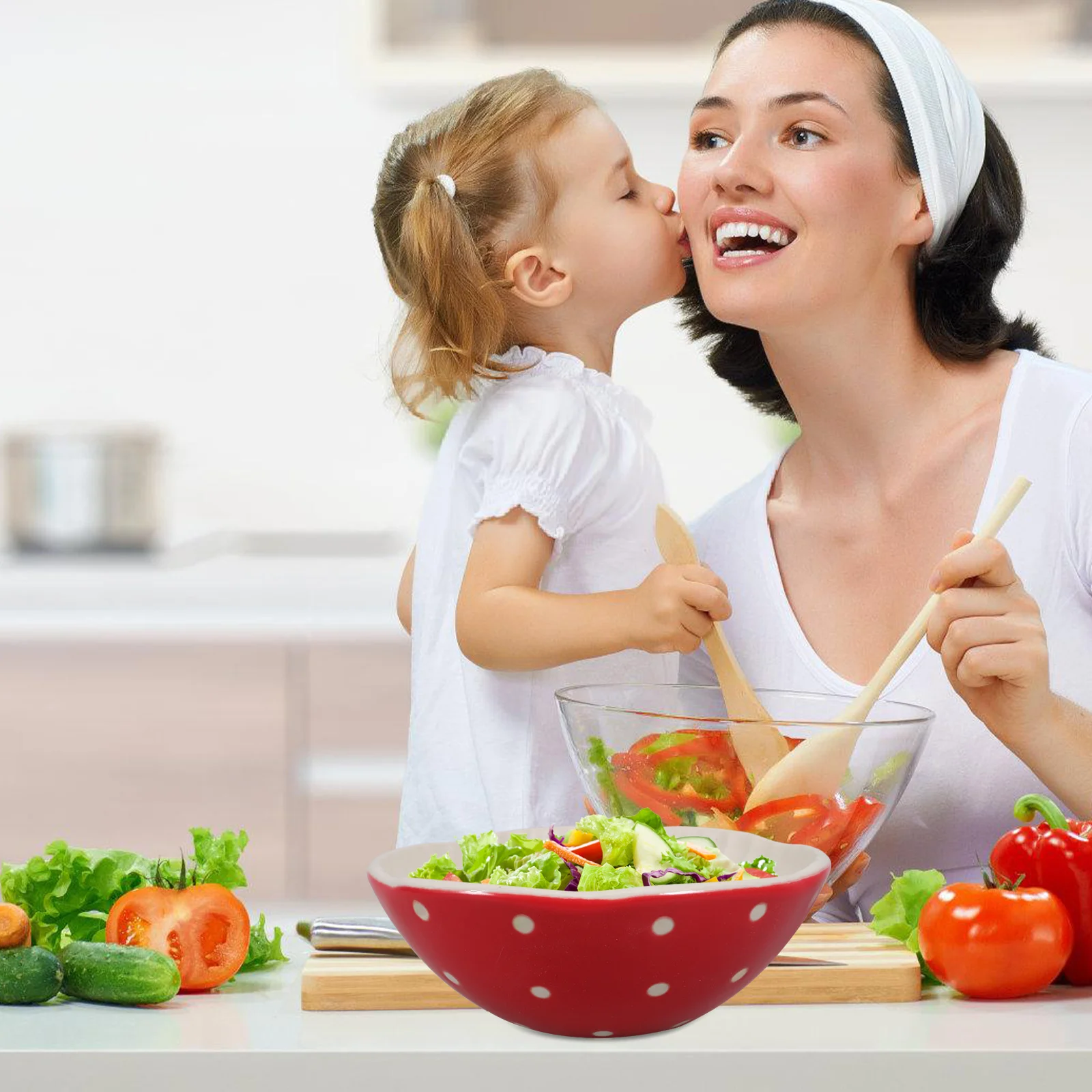 Ceramic Salad Bowl Mushroom Pattern Large Capacity for Food Storage Home Party Decoration Reusable Fruit Dessert Container
