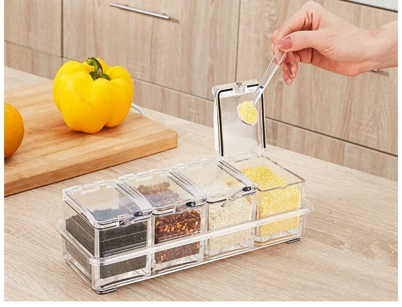 1x Seasoning Box Kit (with 4 Independent Compartments and 4 Spoons)