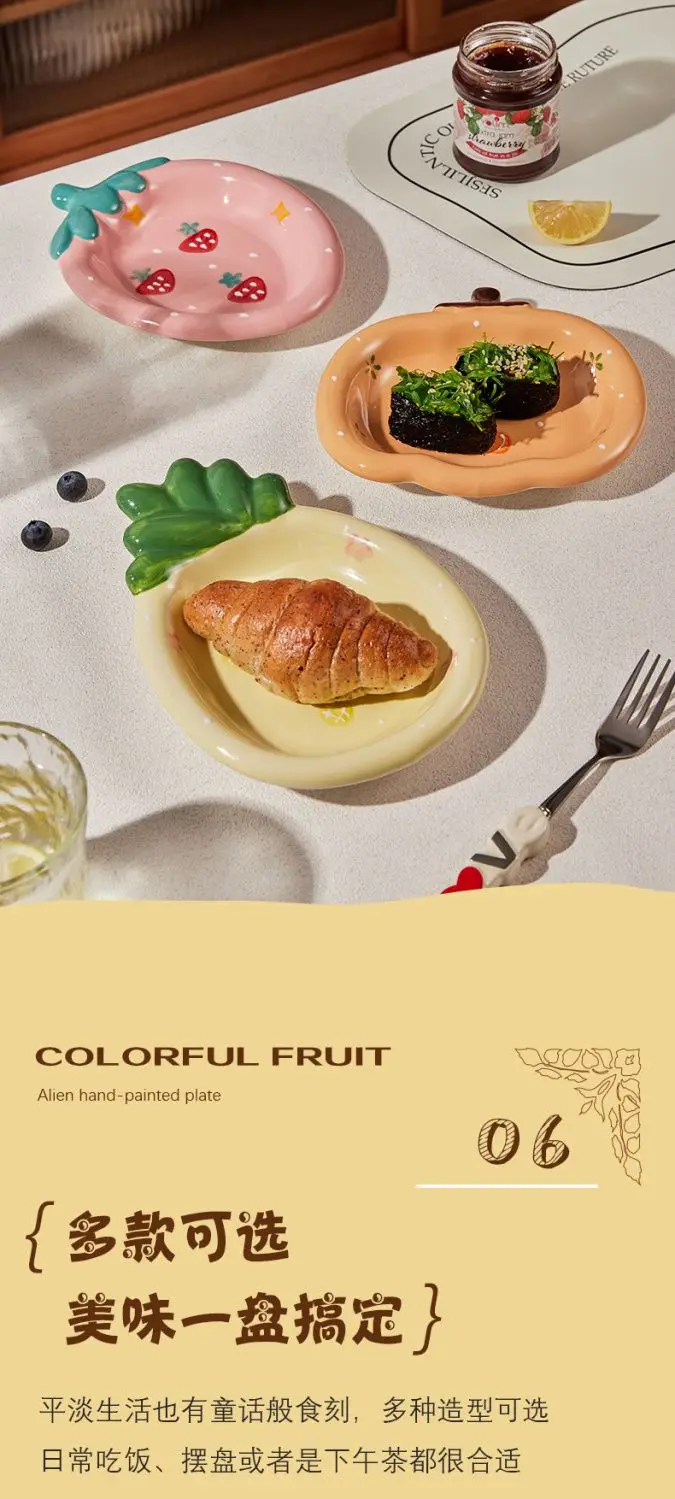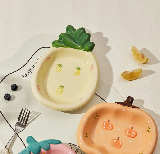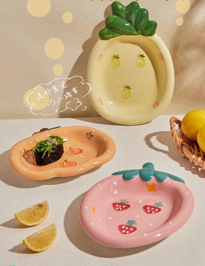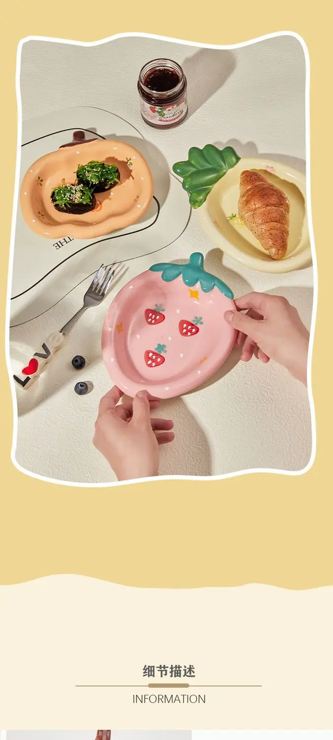 Cute Ceramic Fruit Dessert Plate, Cake  Ceramic Bowl , Snack Dim Sum Plate, Dinner Plate, Cartoon Strawberry Plate