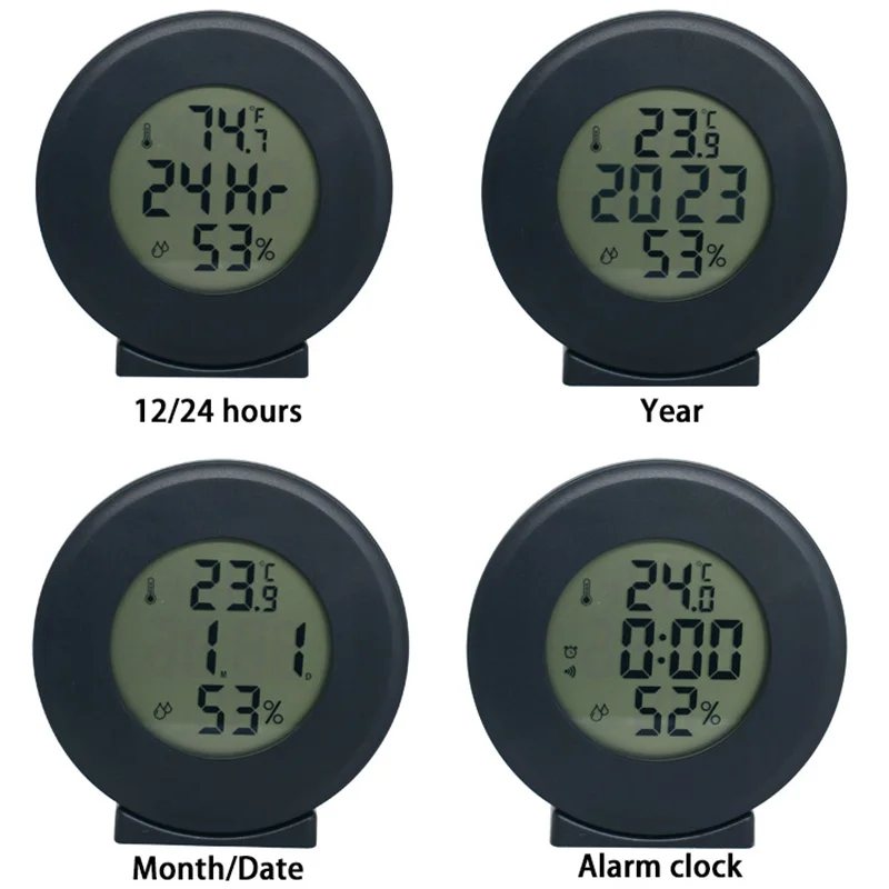 2 Eye-protection LCD display shows clock time, alarm time, calendar date, day and indoor temperature (℉/℃),Hygrometer. 3 control buttons are designed on the back for intuitive and simple operation. All settings can be completed in minutes. 12H/24H time format is available. Temperature units can be switched between Fahrenheit and Celsius.