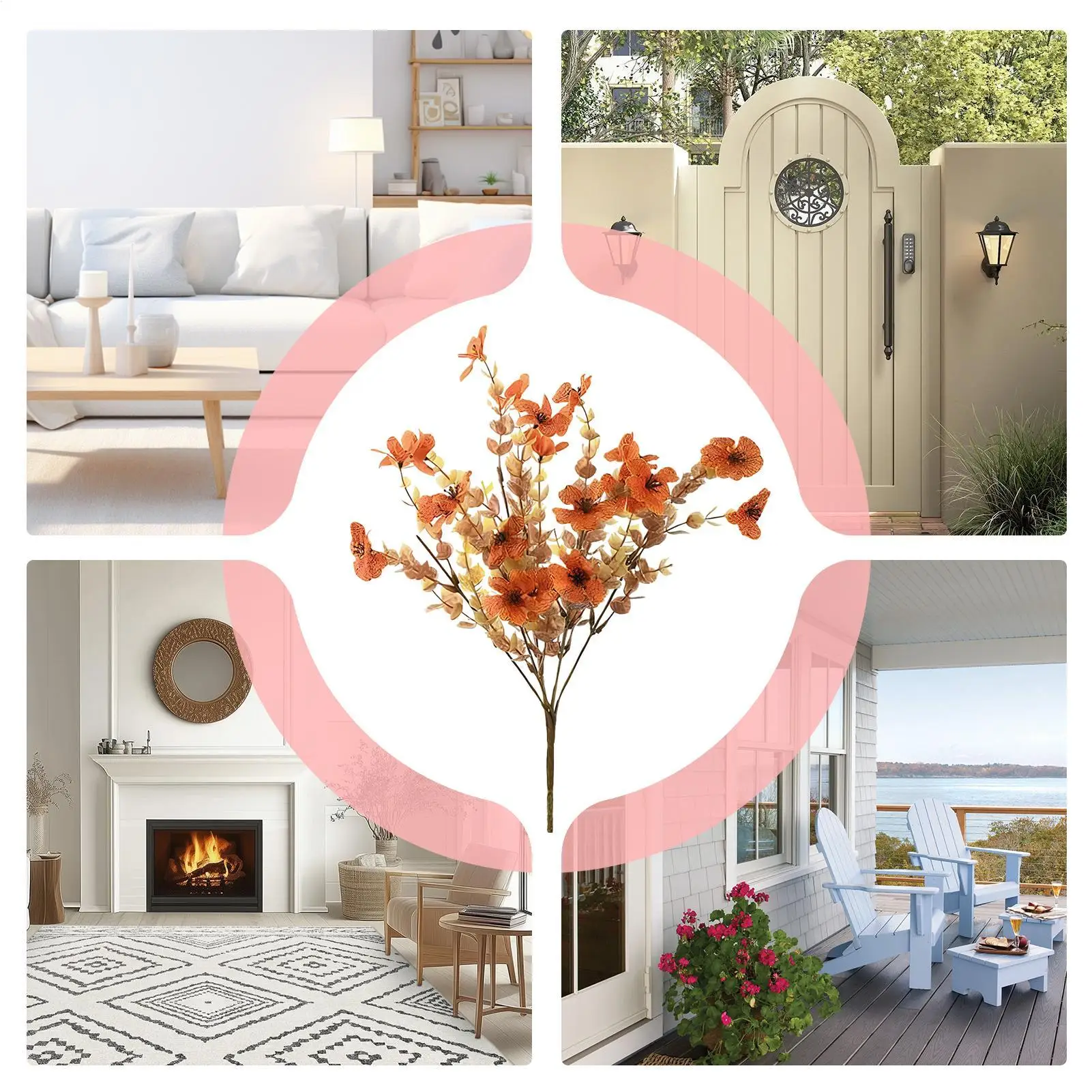 1.All-Weather Elegance: Rain or shine, artificial flowers bring autumn charm indoors, staying vibrant all season, with no gardening needed for lasting beauty and effortless decor