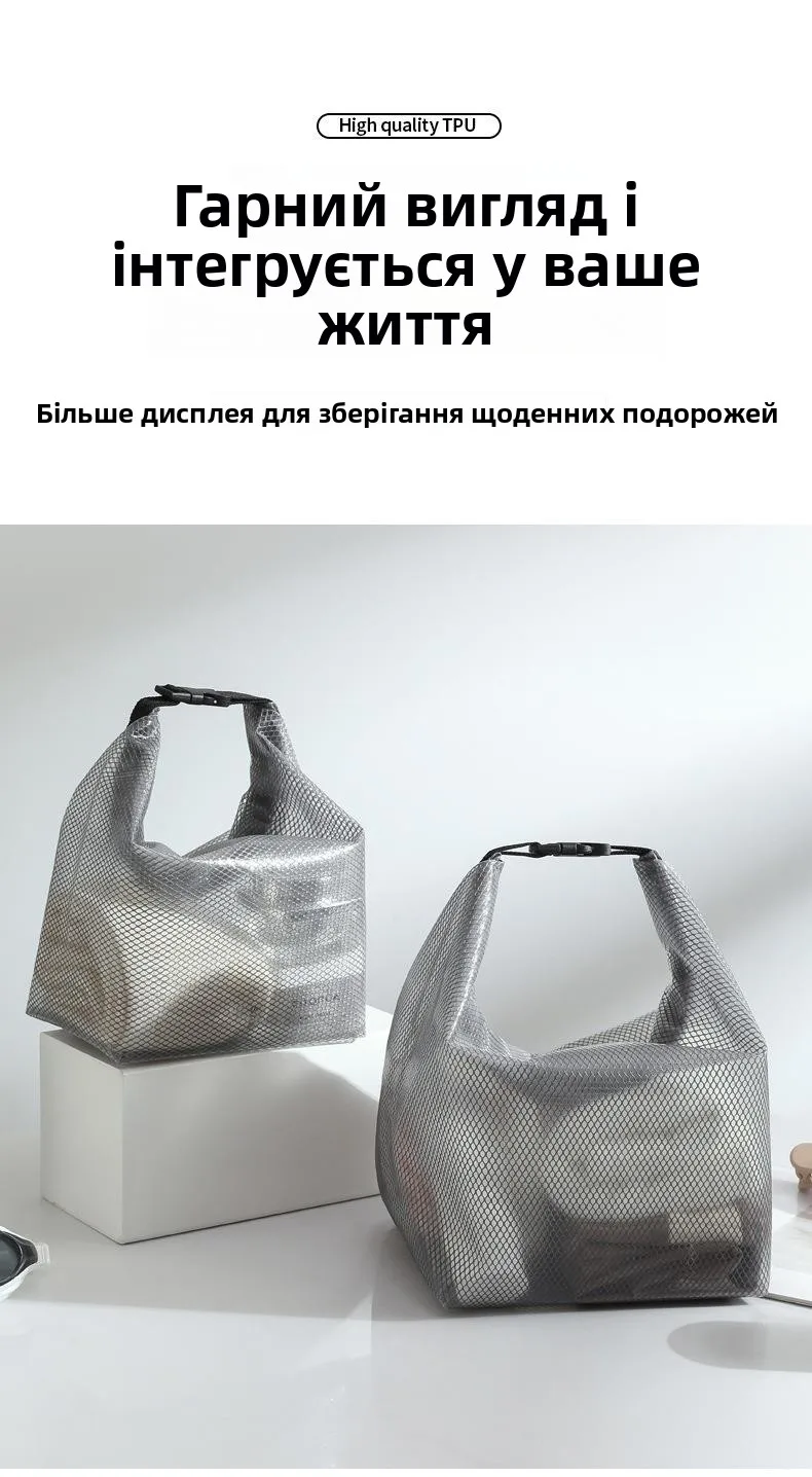 The transparent design of this bag allows you to easily see what's inside, making it convenient for you to find what you need quickly.