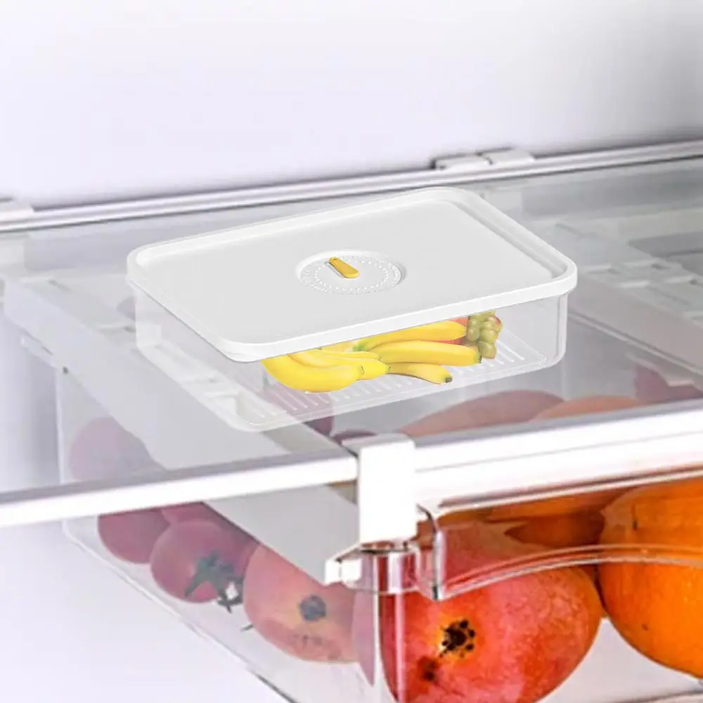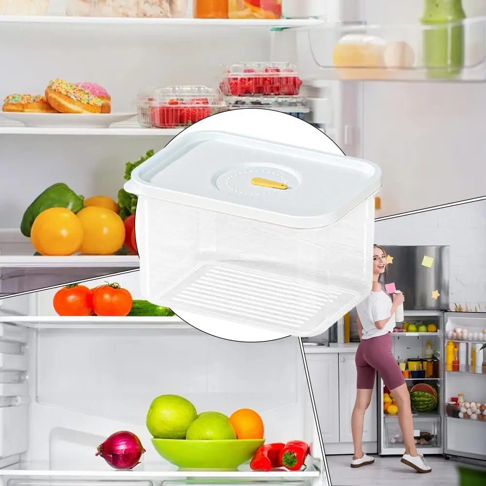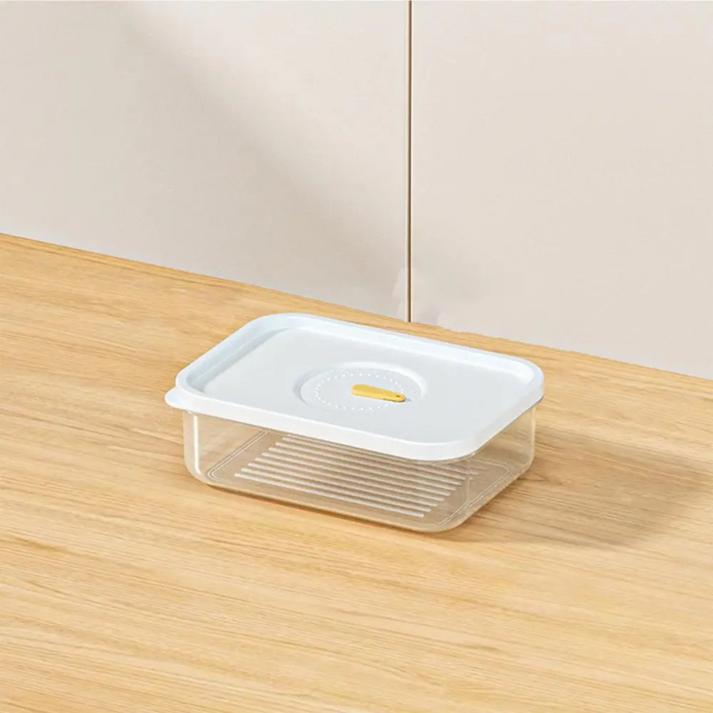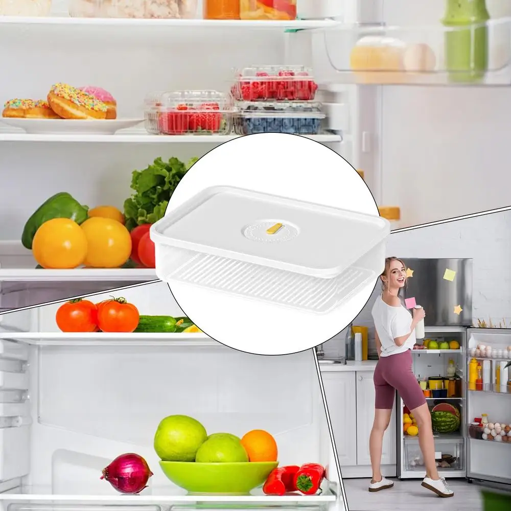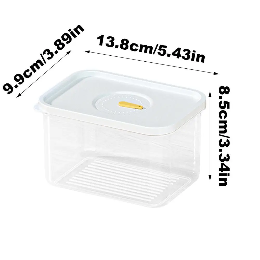 Bullet Points: 1.Refreshing Preservation: Airtight design protects food from external air, preserving flavor and quality, made of good-quality materials to extend the freshness of iced meats 2.Spacious Storage: Improve your fridge organization with our meat storage box. Its compact size and shape allow for easy stacking, efficiently maximizing fridge space. De-clutter your kitchen and store iced meats, veggies, and more with ease 3.Hygienic Storage: Our Meat Storage Box comes with a highly efficient sealing lid that ensures odorless preservation and prevents dust infiltration. It maintains food hygiene and safety, providing a safe and hygienic storage solution for your meat 4.Easy to Clean: Keep your meat fresher for longer with our high-quality storage box. Good-quality materials ensure it's easy to clean and maintain during kitchen use 5.Wide Use: Simplify your kitchen storage with this meat storage box. Conveniently stores different foods, including leftovers, vegetables, and fruits. Its transparent design lets you see contents without opening the lid Keep your iced meats fresh for longer with these good-quality Meat Storage Containers. Their thoughtful size and shape make stacking and maximizing fridge space a breeze. The sealed and dust-proof design ensures durability and simple cleaning, while the transparent design allows for quick identification of contents without opening the lid.