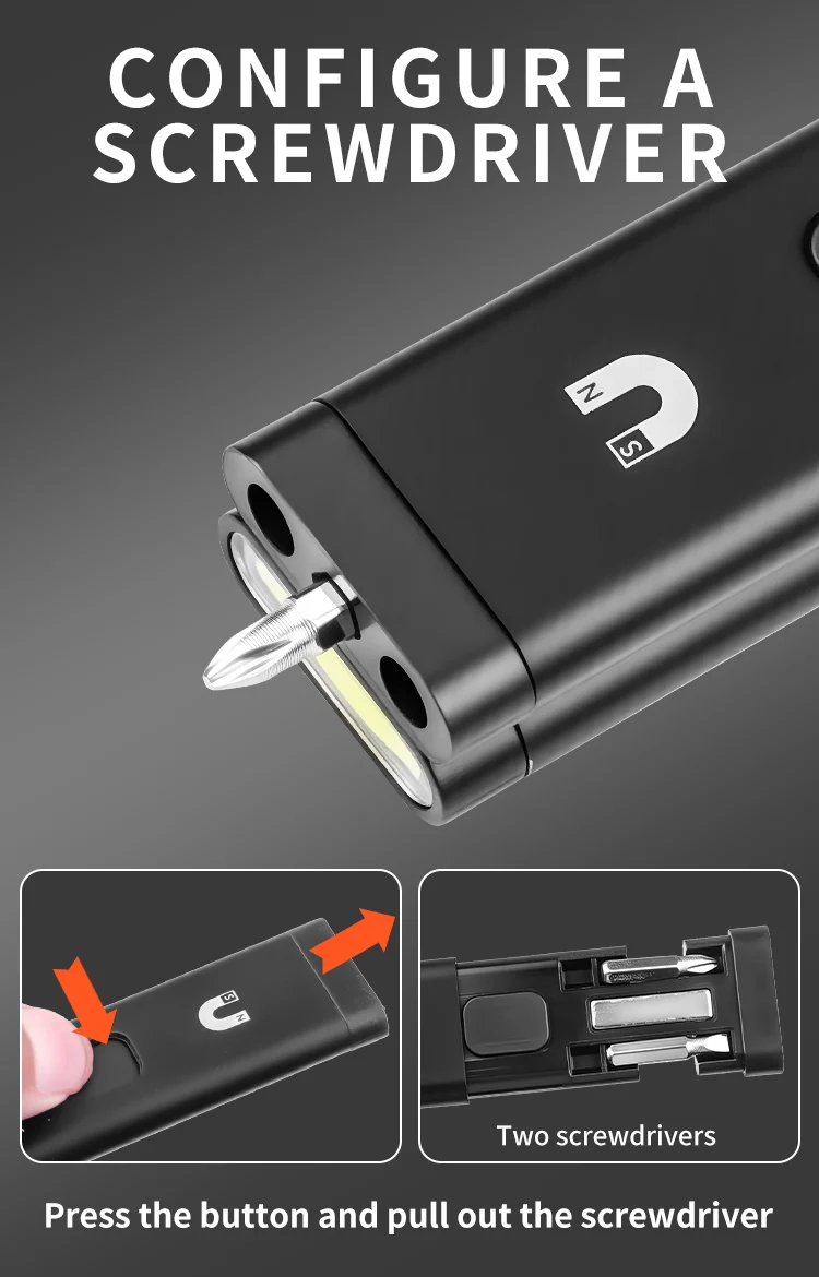Mini LED Flashlight USB-C Rechargeable with Ruler, Multi-Source Lighting, Hidden Screwdriver Tool Kit, Magnetic Work Light