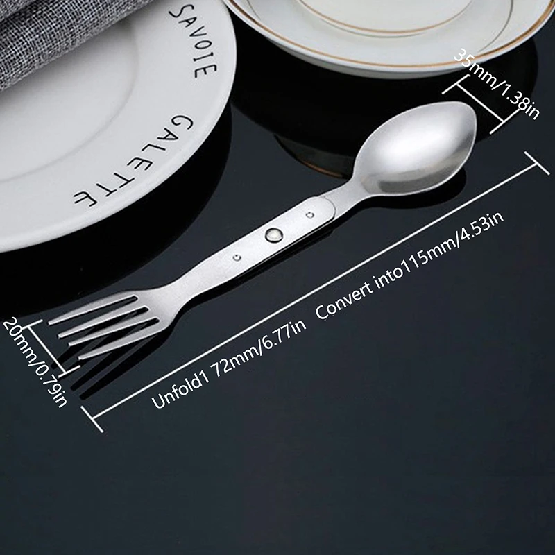 New 2-in-1 Fork Dessert Spoon Cutlery Set For Outdoor Camping And Picnics Portable Durable Stainless Steel Mini Fork Spoon