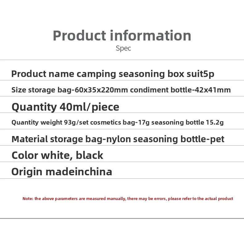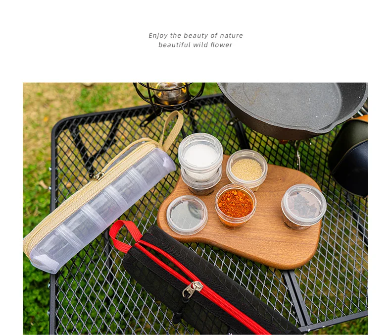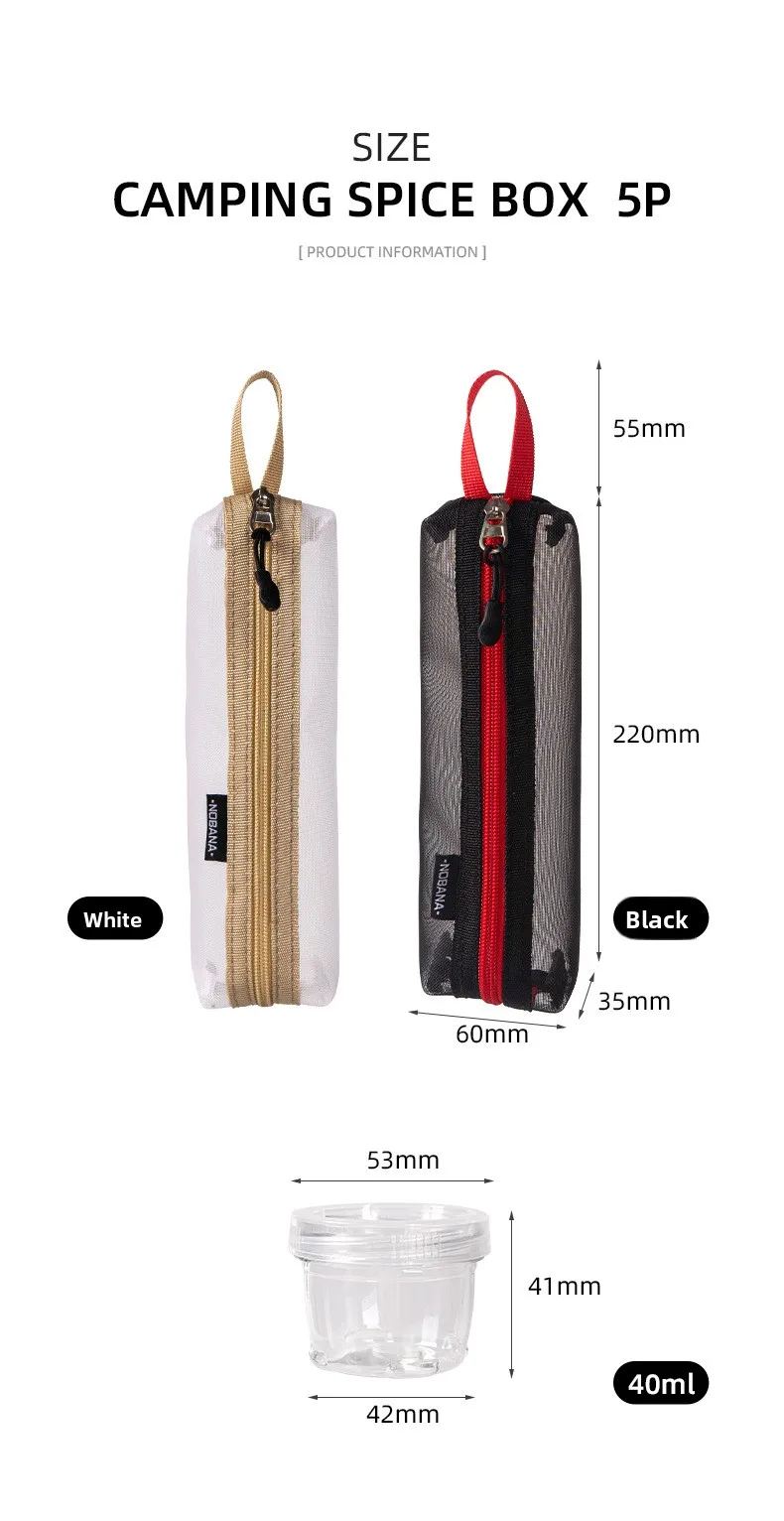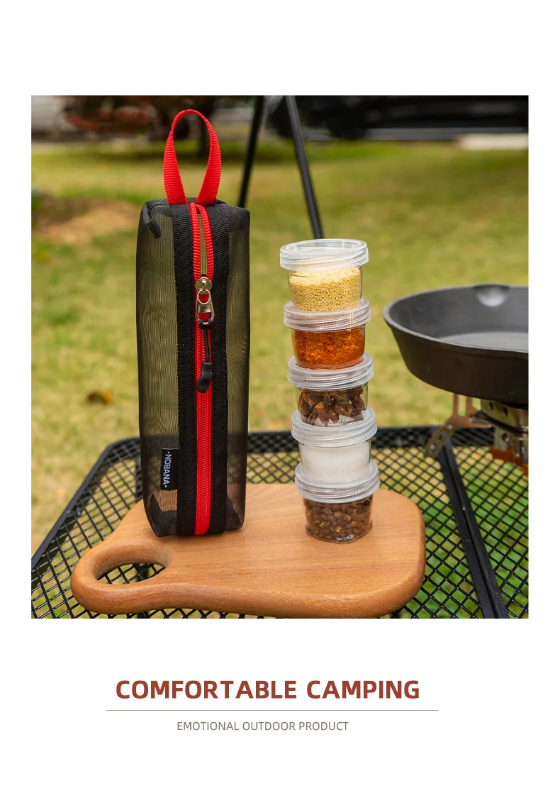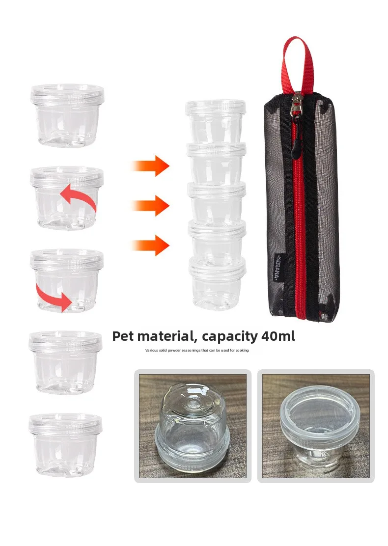 NOBANA Portable Travel Camping Spice Kit Container Bag with 5 Clear Seasoning Bottles Travel Spice Holder Condiment ContainerSet