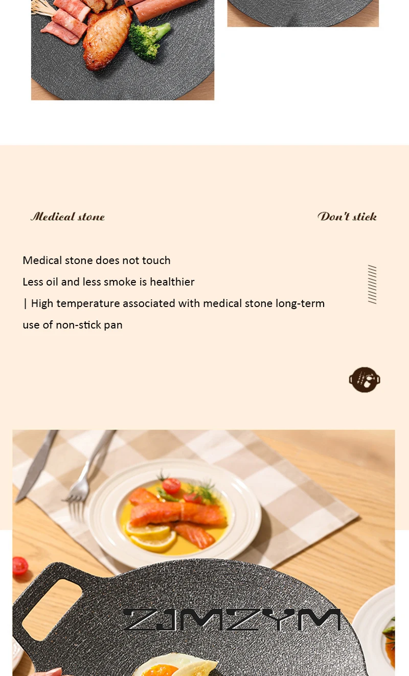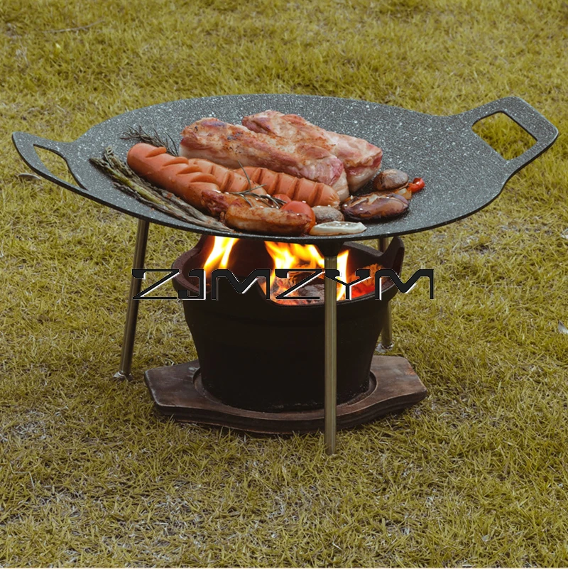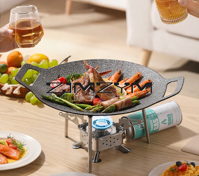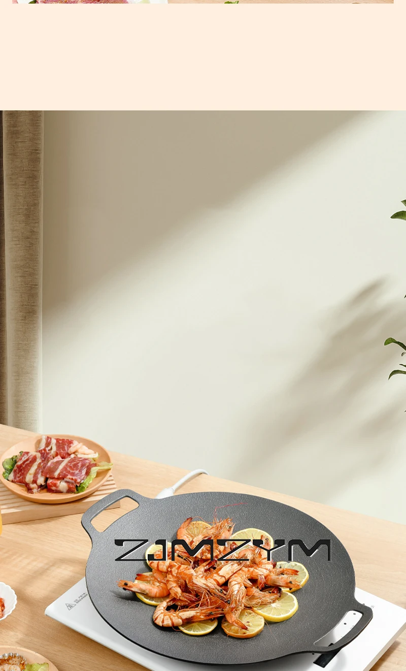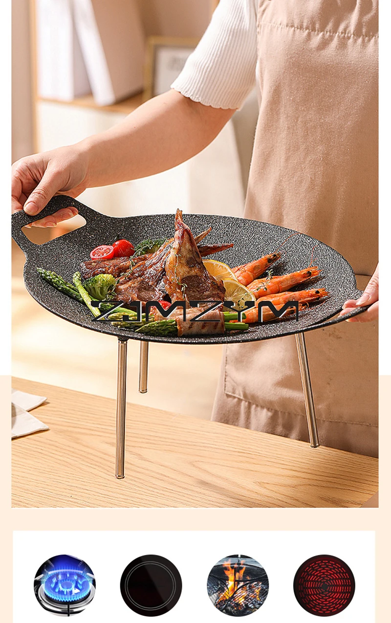 Round Grill Pan Thick Cast Iron Frying Pan Flat Pancake Griddle Non-stick Maifan Stone Cooker Barbecue Tray BBQ Pan