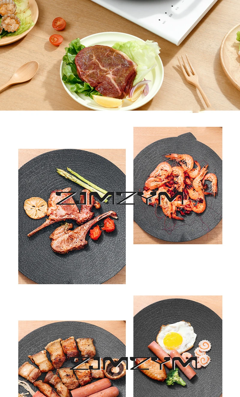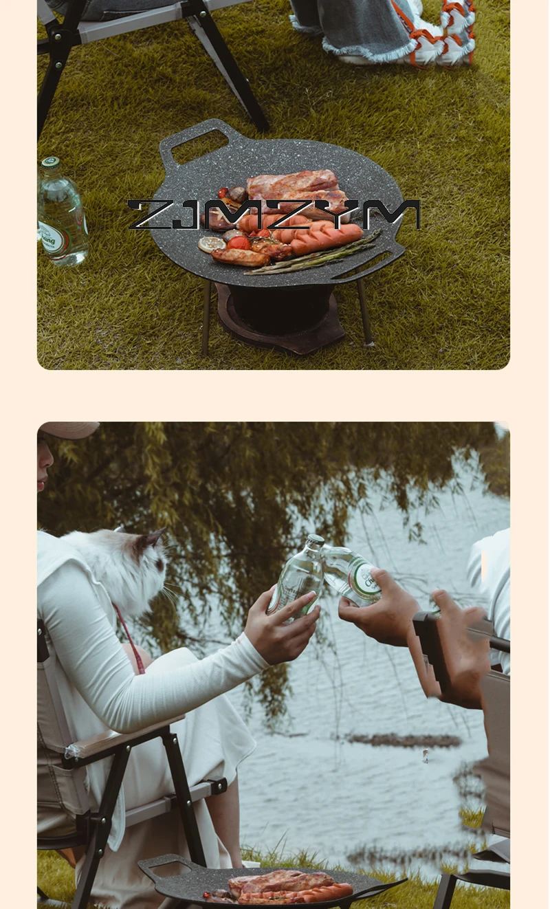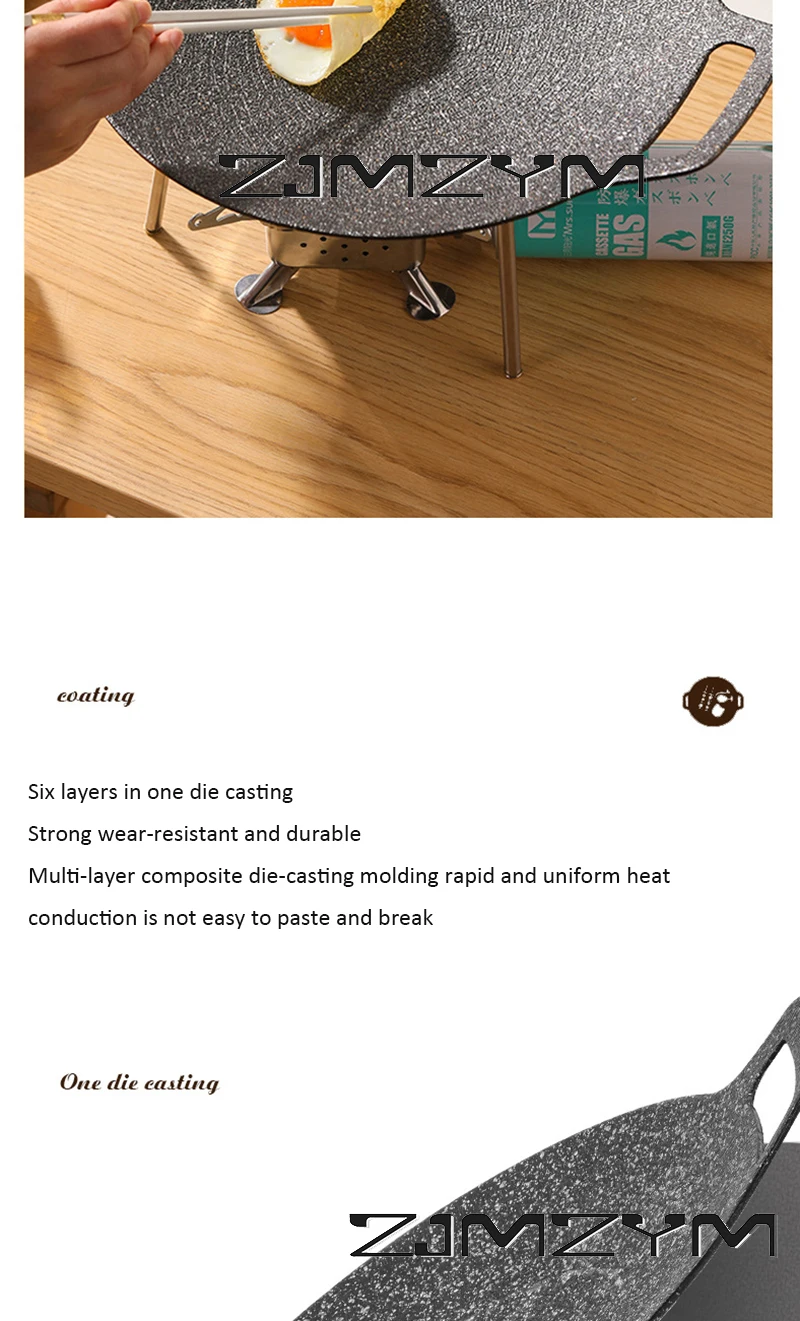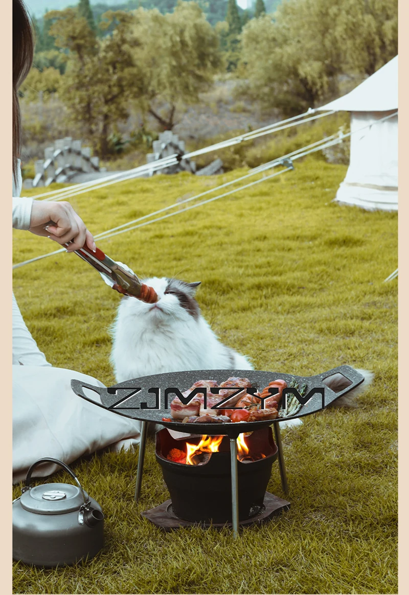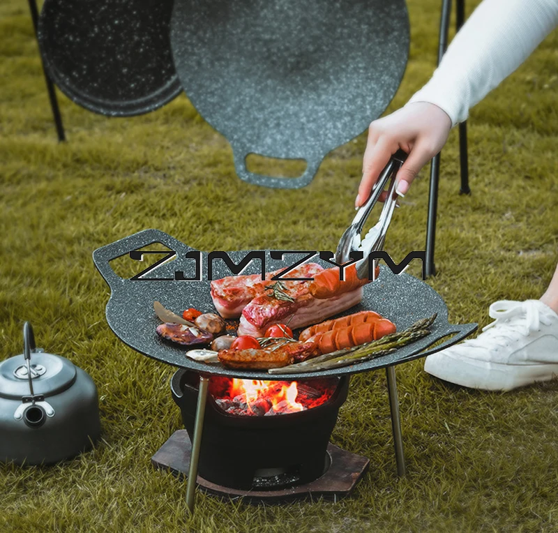 Round Grill Pan Thick Cast Iron Frying Pan Flat Pancake Griddle Non-stick Maifan Stone Cooker Barbecue Tray BBQ Pan
