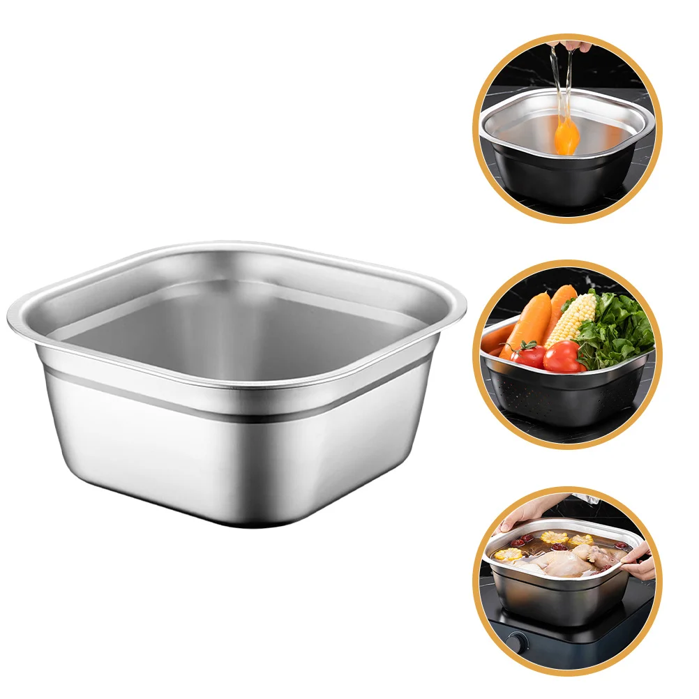 Square Stainless Steel Washing Basin Large Capacity Multi-Purpose Vegetable Fruit Mixing Bowl Kitchen Gadget Buffet Tray Soup