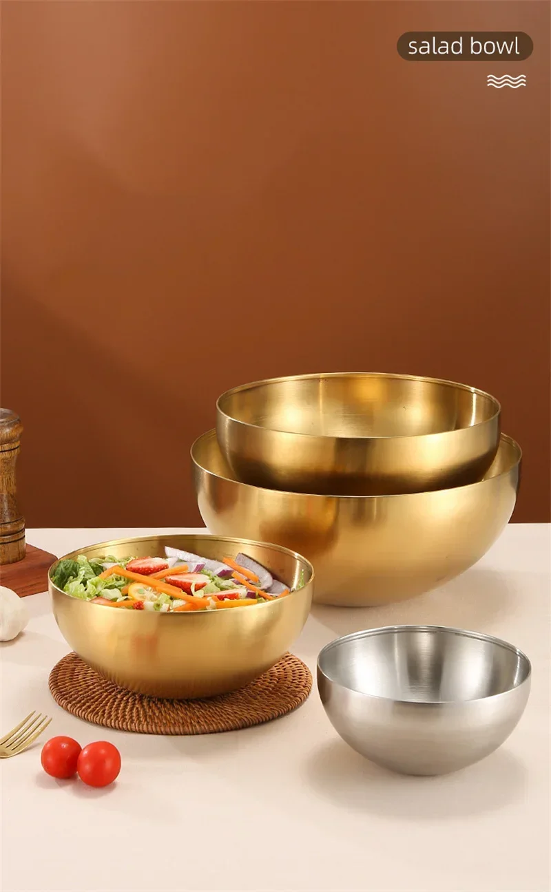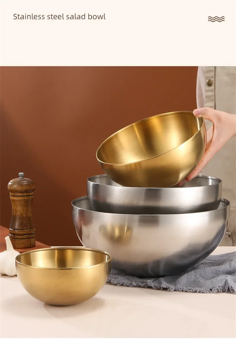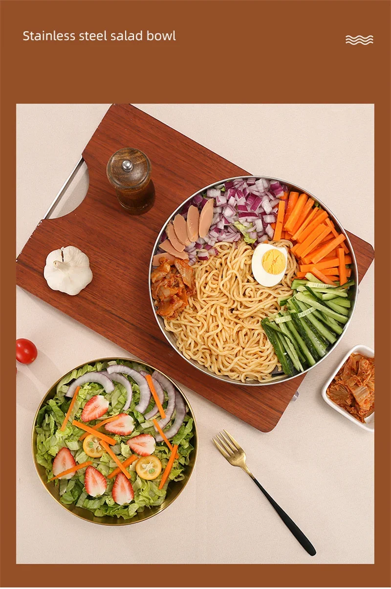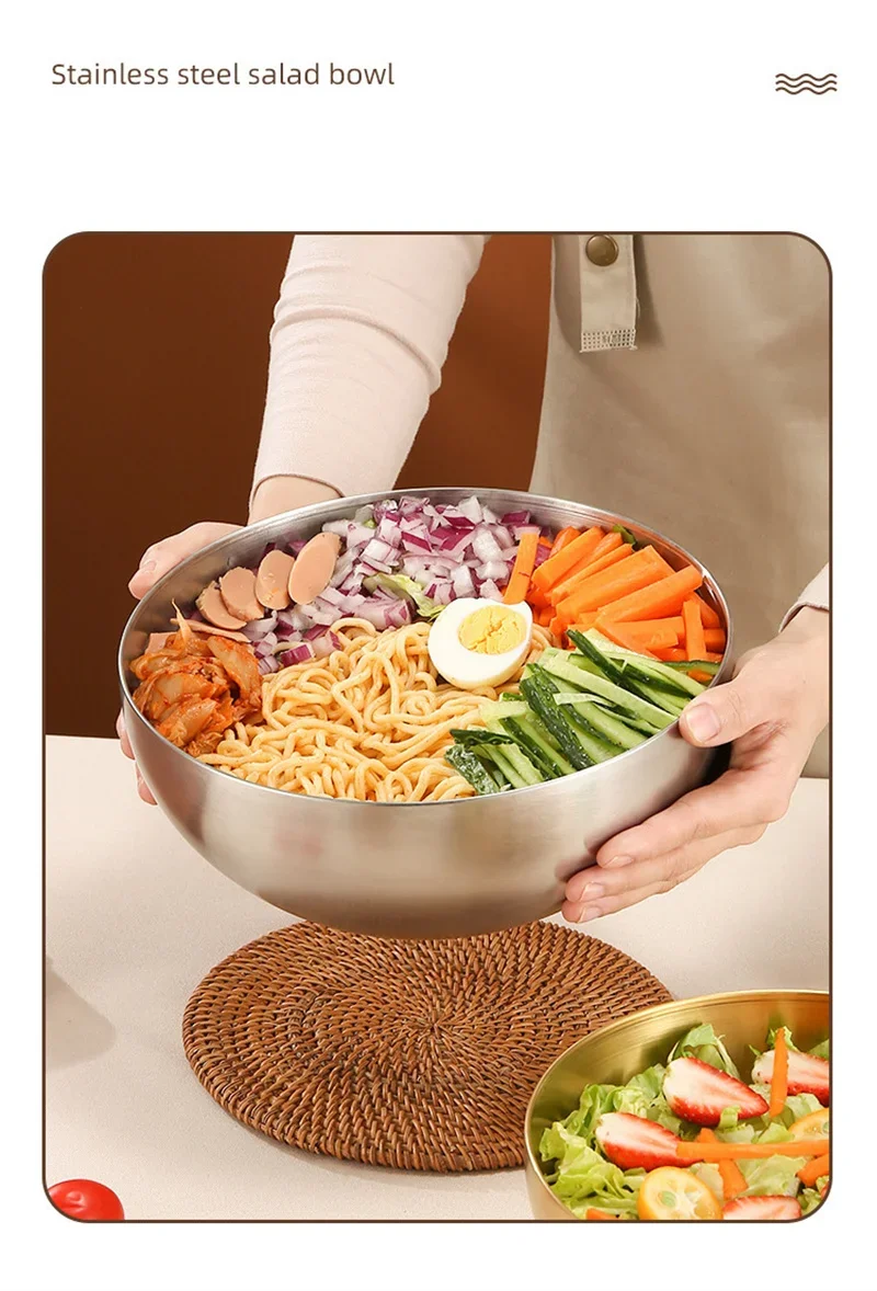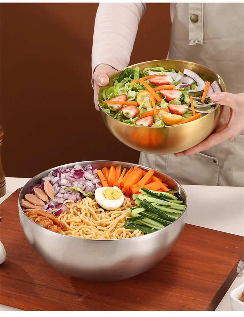 Thick Stainless Steel Fruit Salad Bowls 15cm/20cm/25cm Soup Rice Noodle Ramen Bowl Mixing Bowls Food Container Kitchen Tableware