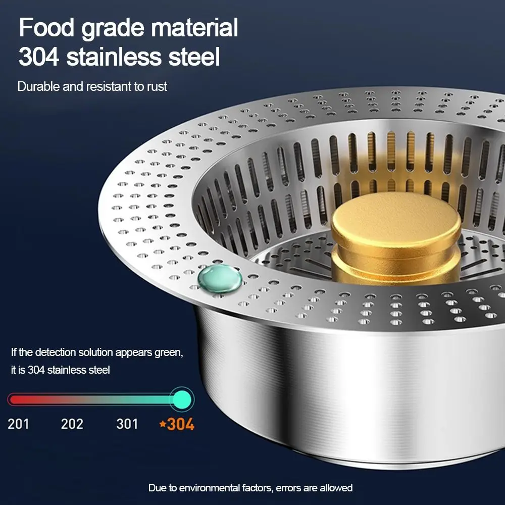 -Premium Materials:our Crafted with premium stainless steel, sink drain strainer sets a new standard for durability. Unlike ABS plastic basket alternatives, our stainless steel body and baskte offers exceptional resistance to corrosion, scratches, and high temperatures, ensuring long-lasting performance. Its recyclable nature aligns with sustainability goals, saving you money on replacements and reducing plastic waste.