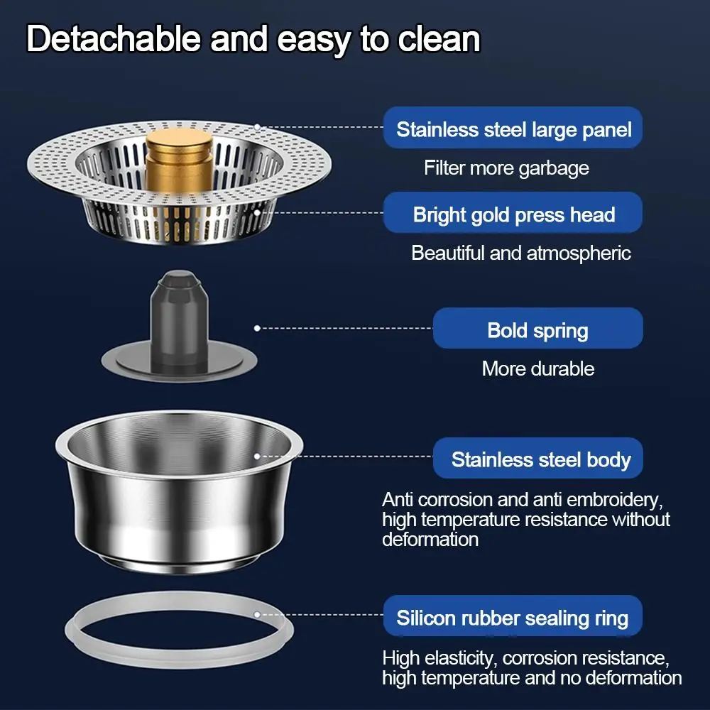 Upgraded 3 in 1 Kitchen Sink Drain Strainer Pop Up Anti-Clogging Sink Strainer Basket Premium Deodorant Sink Stopper for Kitchen