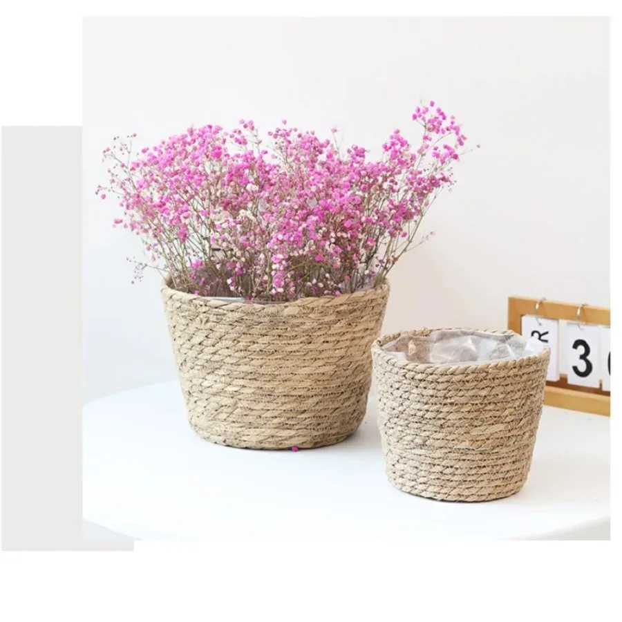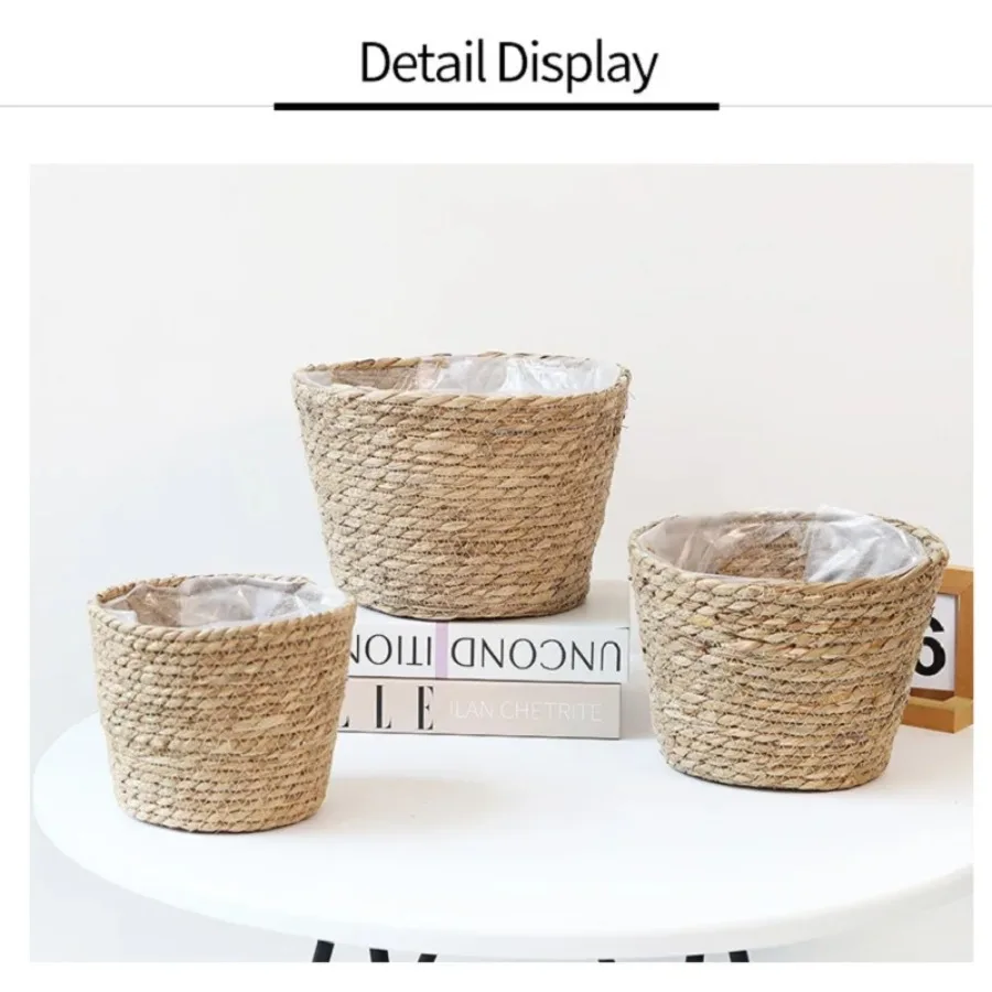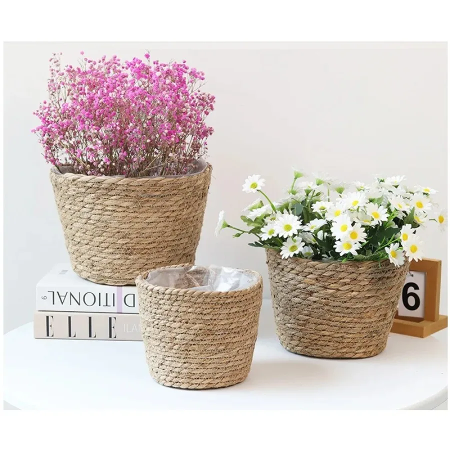 Woven Grass Flower Plant Pot Basket Planter Basket Indoor Outdoor Flower Pot Garden Decorative Flower Plants Basket Storage Use